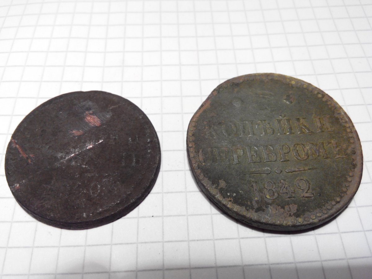 Помыл монетки, сохран из леса так-сяк, с поля одни какали и у меня и у других.. В лесу искали домики лесника, один нашли - пуга, крест и 13 монет царей оттуда На полях побили пару домиков, битых, но не сильно, на одном вылезла ВРПэшка на втором полтинник Н2 и русско-польская, также хуторской хламец и гильзы.