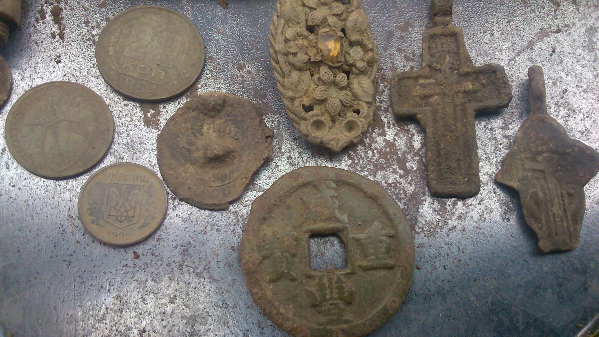 Сегодня с камрадом открыли новую точку по ЧК, поэтому монет почти нет. За то без сувениров не уехали - порадовала уточка и половинка серебряного бубенчика. Верхний ряд - все нашлось на одном поле, и без мусора и наслоенки вообще - что ни сигнал, то находка!