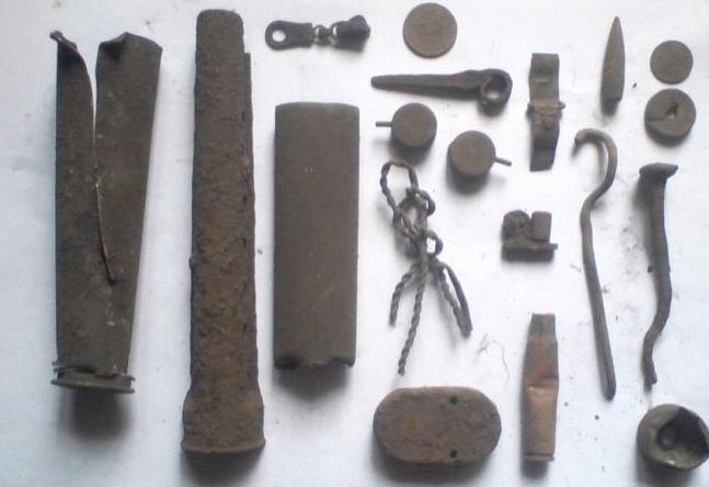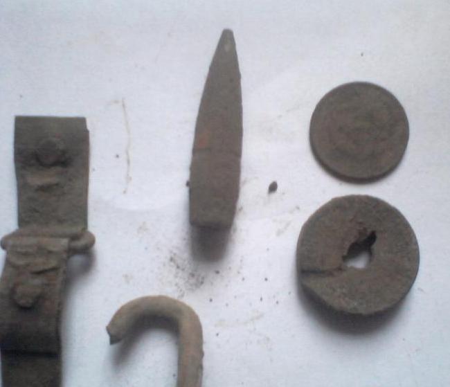 Сегодня никто с нами ехать не захотел, поэтому вдвоем с камрадом решили пошариться где-то по местному, не далеко от города. Углубились в лес, и хрен дернул нас прозвонить немецкие позиции.. Первый же блин звенел весь.. пришлось проверить. В нем был пожар, и перекрытия завалились, засыпав сам блиндаж и возможно какое-то содержимое. Немного копнули, и показалась буржуйка.. жар был такой, что даже верхняя часть метала деформировалась при обрушении. Немного посовещавшись, решили откопать и тащить к машине эту гребаную печку. Потому что, если местные бродяги ее заметят, то просто сдадут на металлолом. А так может кто-то еще захочет ее восстановить, для антуража. Пока дотащили печку к машине, перекусили, выпили чайку, было уже начало третьего, особо не нагуляешься.. Решили походить вокруг.. Час полной тишины, начинает вечереть настроение не очень.... камрад поднимает нож кочевников. Я мертах в двадцати, иду к нему посмотреть,по пути цепляю сигнал.. и достаю ихний же топор. Он идет ко мне посмотреть топор, и цепляет монетный сигнал.. Копает, уже представляя катин пятак.. закопался на штык, второй, это уже кажется странным, и тут на дне раскопа виднеется что-то знакомо-зелененького цвета, но явно не пятак.. Вот так, день в пустую, и три находки в течении двух минут.