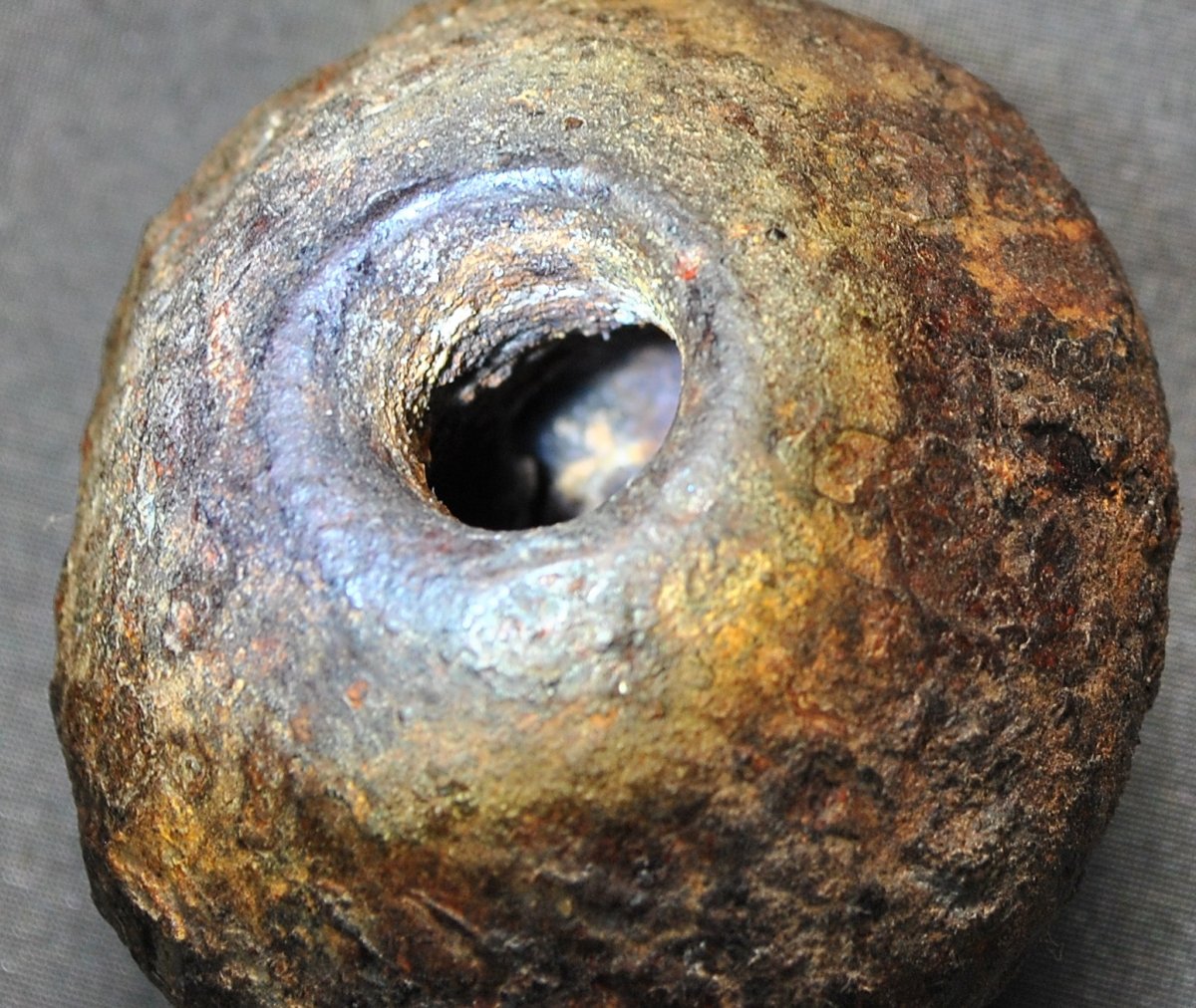 Отверстие 10мм внутри полая залита свинцом(видны его остатки). Камрады спасибо за определение находки, но наверное лучше создать тему в соответствующем разделе. Хотя и так понятно уже что это булава или кистень, одним словом чайникодробилка)