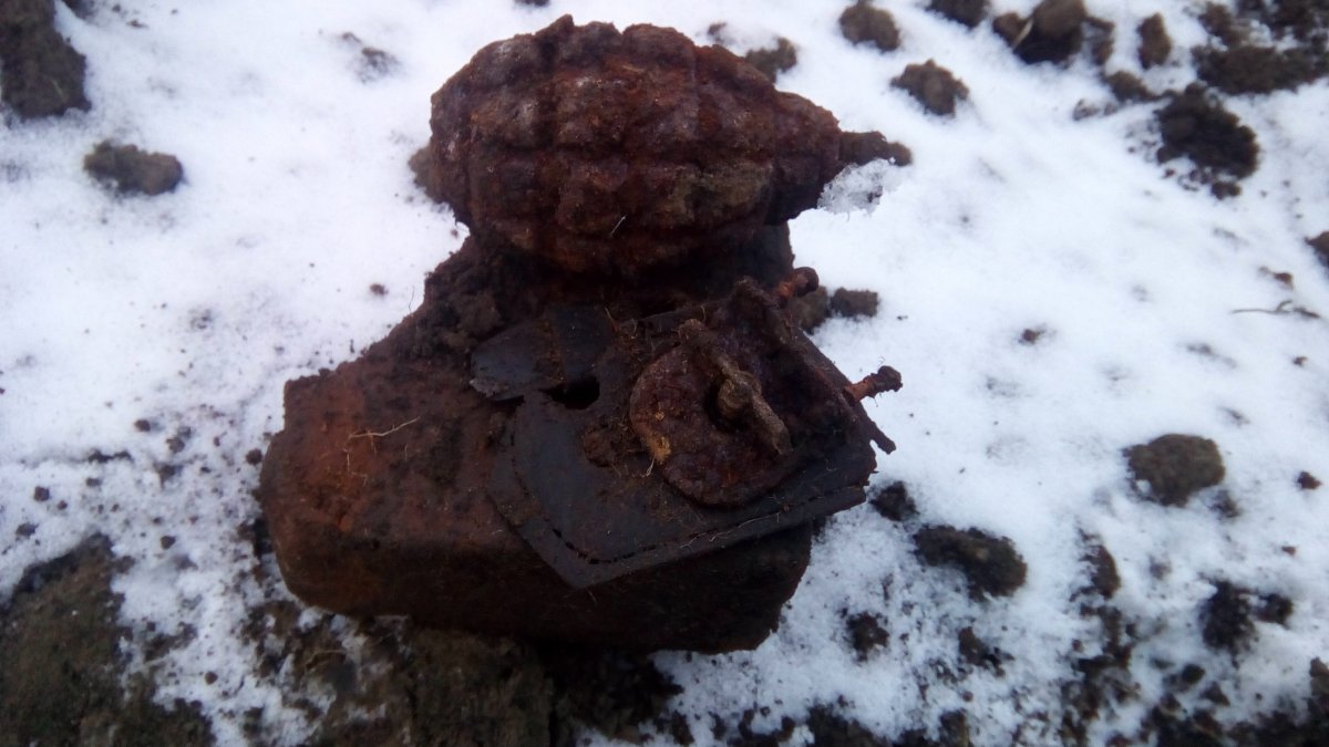 отсаперили, голову открутили, тол либо со временем сам издох, либо выгорел при палке травы. пустая болванка, вполне годна в качестве экспоната)