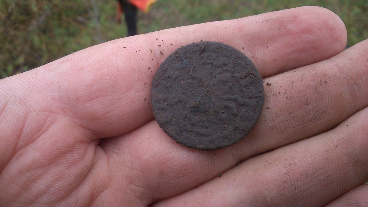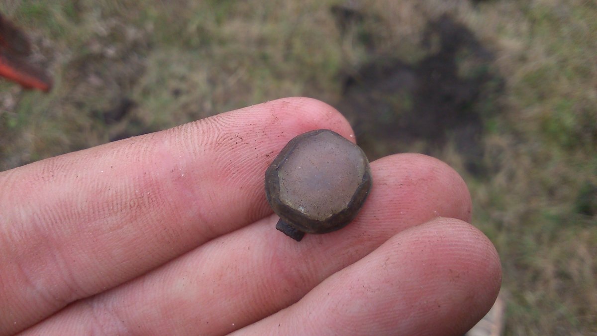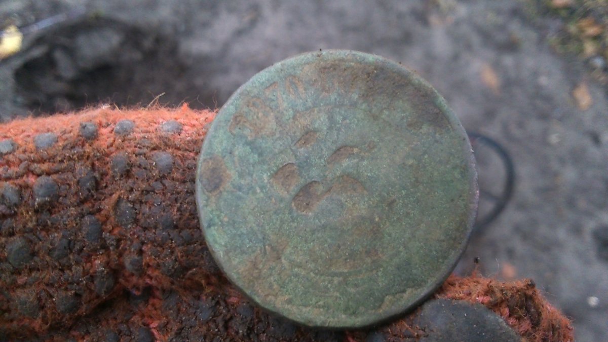 Всем доброго вечера! Небольшой отчет за три часа копа 19 ноября. По дороге к намеченной точке увидел выжженную поляну на месте ярмарки, где летом находил денгу в хорошем сохране и полушку ВРП. Но тогда было куча травы. Думал, хоть сейчас нормально покопаю и будет много находок. Ага, щас! (с). Кроме кучи осколков, 2 цветных сигнала за 1,5 часа: . Ну ок, поехали дальше. Приехал, уже почти 15:00, стремительно темнеет. Но место хорошее, бугорок от советского домика и поляна в диаметре 20 метров от него. Пошли находки, среди уймы алюминиевой проволоки, естественно. Близость позиций дает о себе знать: Ну и последние 2 находки уже поинтереснее. Правда одну зацепил лопатой, лежала на ребре, а вторую - 5 коп. - ещё при жизни не пощадили.