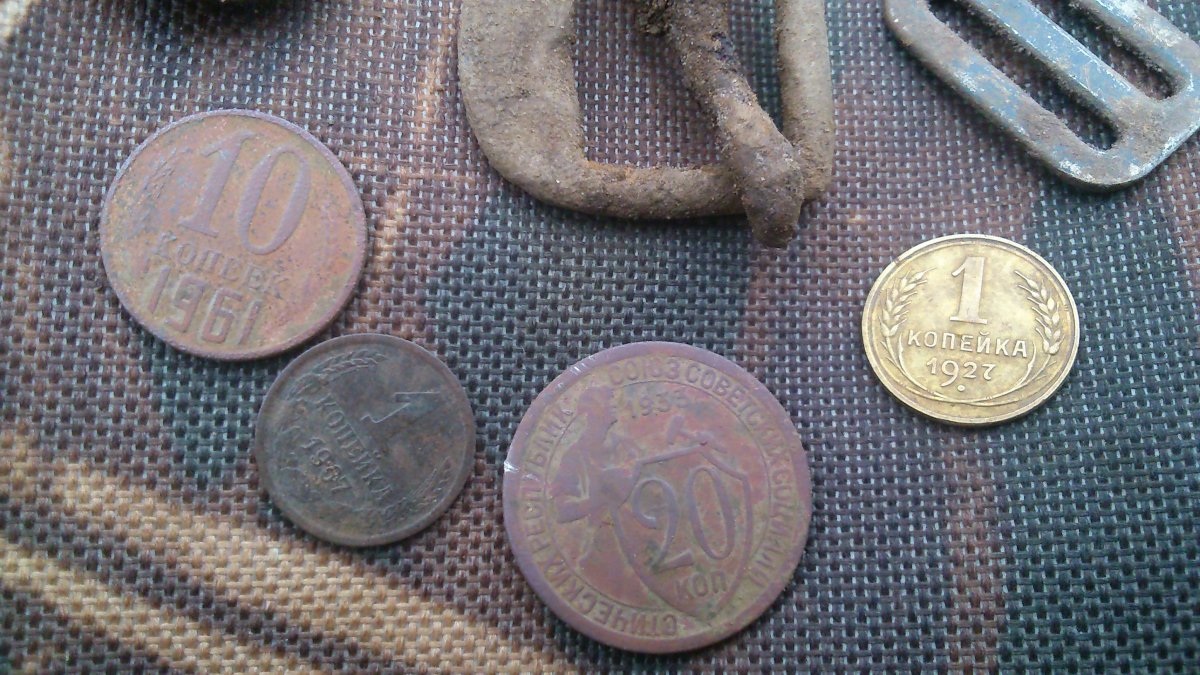 Далее переходим на прошлую поляну, где нашел 1 пфенниг. Полезли пуговки и конинки, но царизма больше нет. Ну и ладно, результат и так хорош. Понравилась 1 копейка 1927, сохран - бомба. Однозначно в альбом.