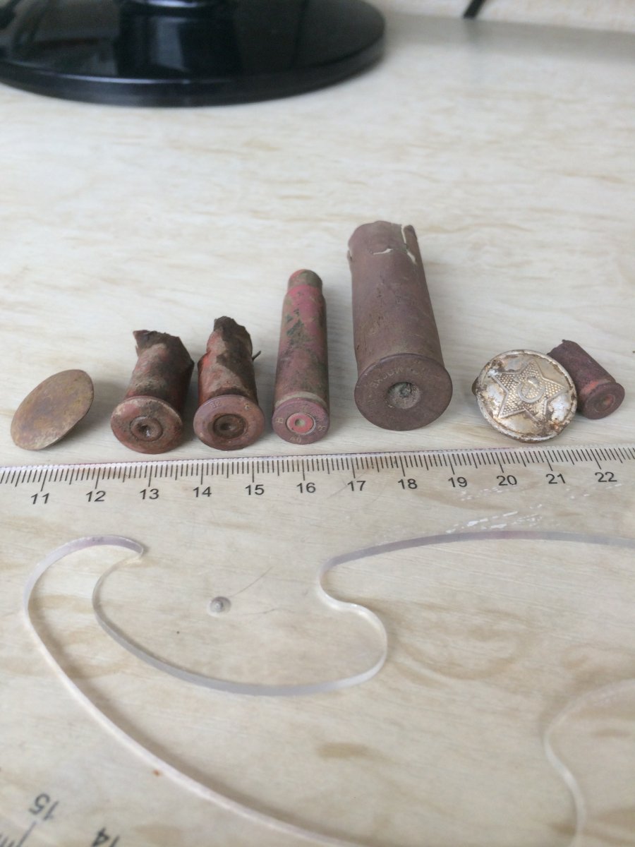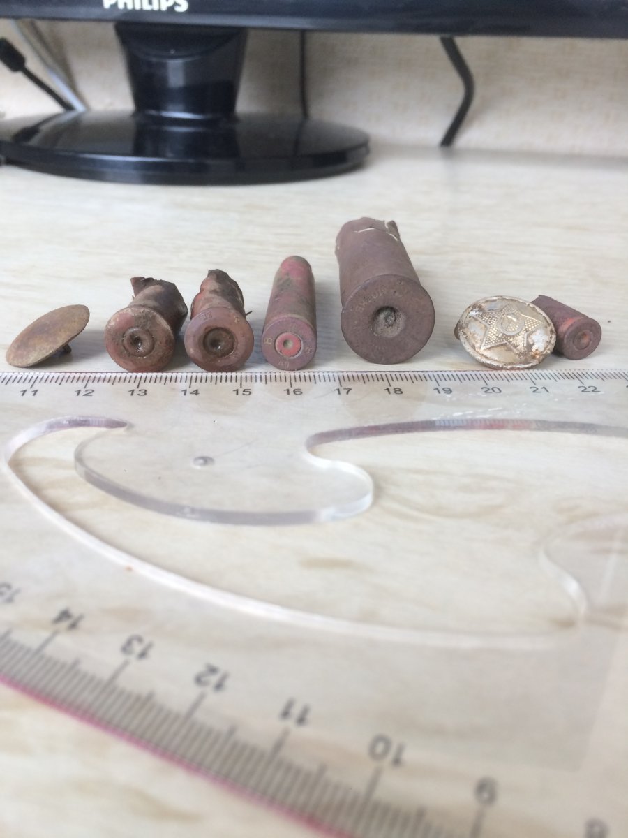 Сегодня был на копе.Подскажите по крайней левой пуговице,большой гильзе и какой то странной норе,похоже лиса живет,или кто то подобный