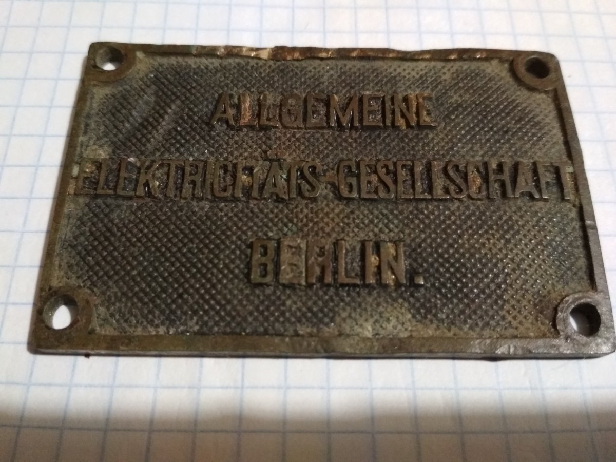 Вроде как от жатки или сеялки с 1870-1900 годов.Находили такой же,цинковый сплав.Другая фирма не АЕГ,но тоже Берлин.
