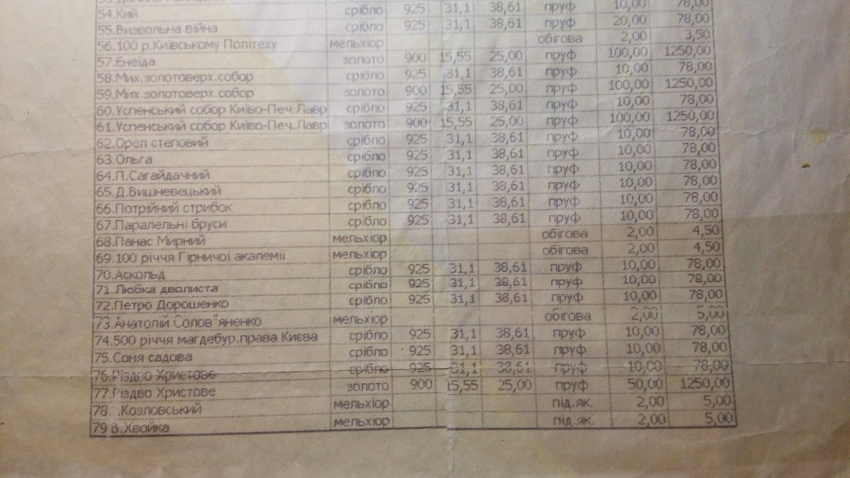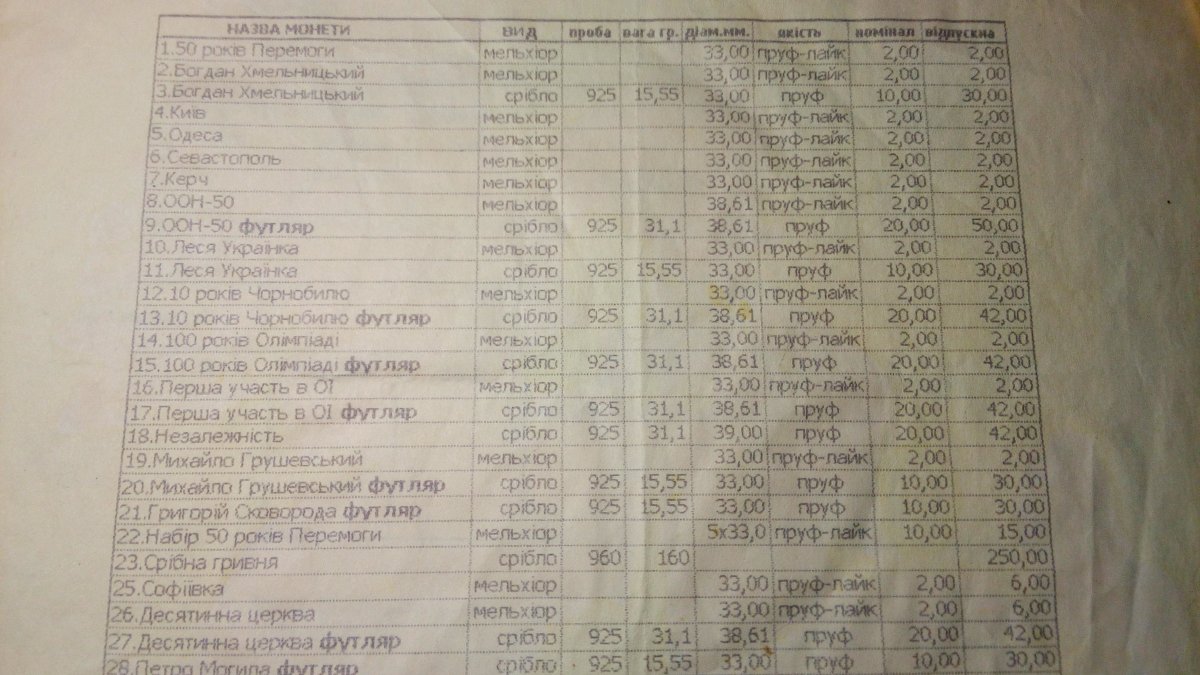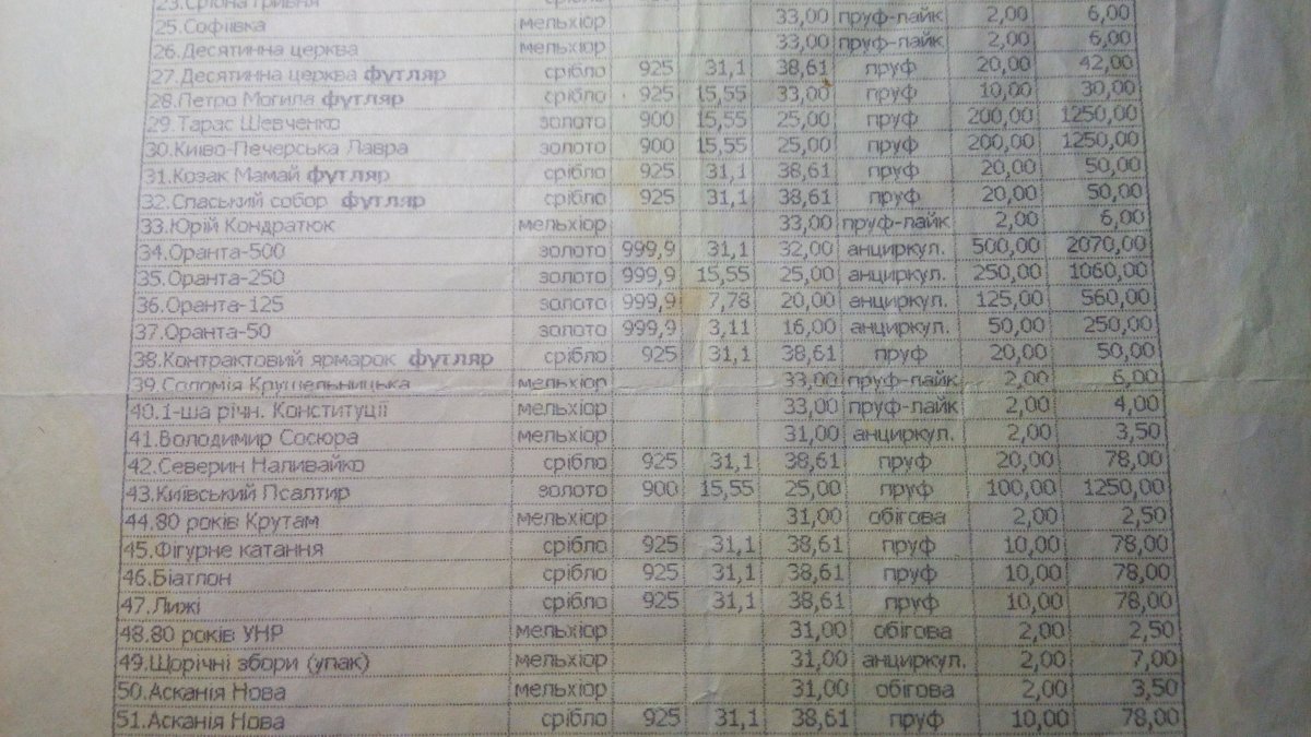 Прайс с НБУ нашол, подписан 2000 год, но я точно не помню. Недраги,в основном, номинал; монеты 2 грн., сделанные в Словакии, по 6 грн., а ща от тысячи, наверн; ЕБРР - таки 4 грн., а ща тыщ девять?))) Серебро - пол унции - 30 грн., унция - 50 грн.