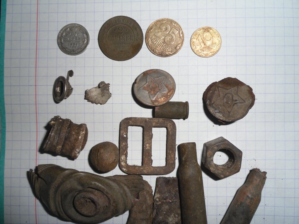 А кстати, я заметил на немецких позициях попадаются монеты разных стран и эпох. Говорят они были суеверными и почти у всех в каблуке сапога хранилась монетка на счастье. Ещё монетки они бросали на дно блиндажей. Практически в каждом их блиндаже на дне можно найти монетку. При чем монеты разных стран и эпох.Лично находил монеты оккупированной Польши, сантимы Латвии 30-х годов, ранний СССР, царской чеканки. Один раз в куче гильз Маузера нашёл 2 копейки 1820 года.