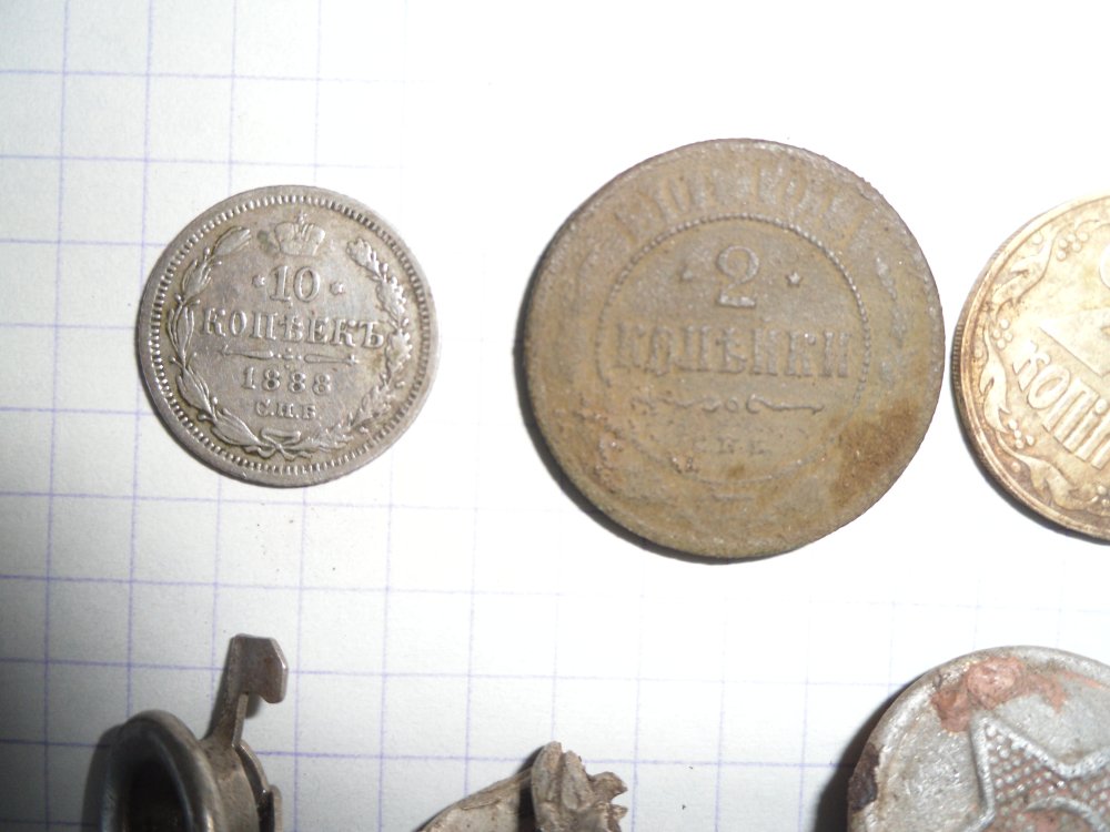 Сегодняшний выход по старым местам. Вот что удалось накопать за 1,5 часа. Порадовали 10 копеек 1888 года. Не частая находка.