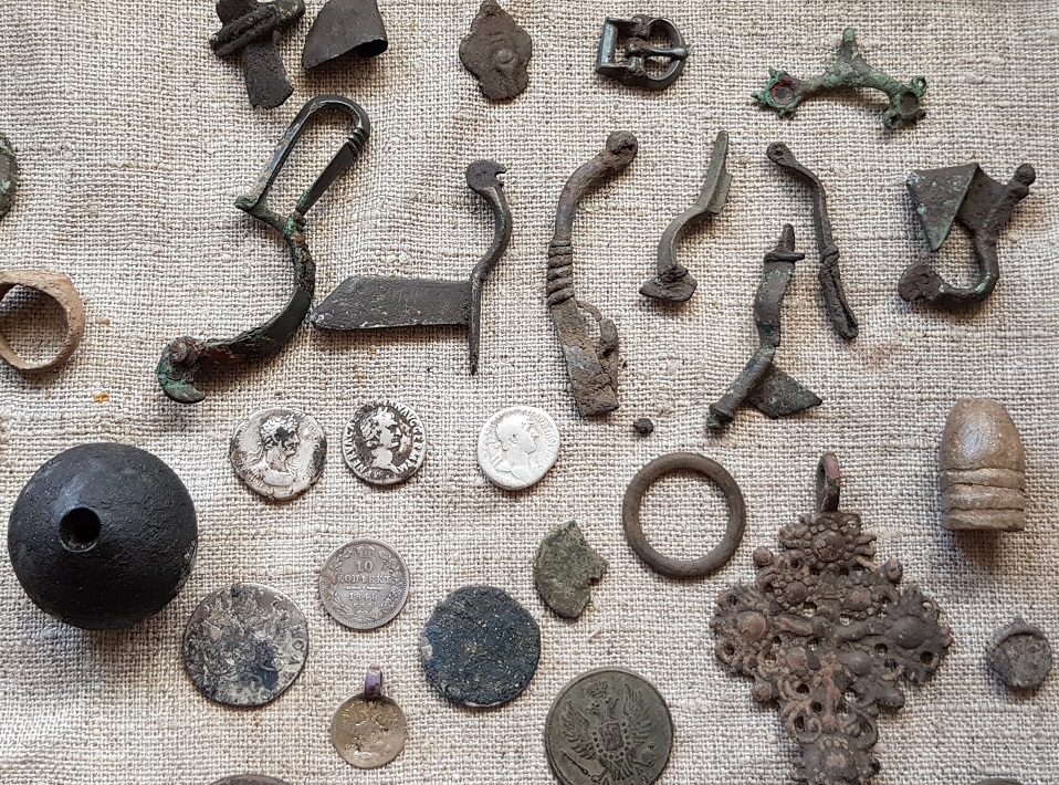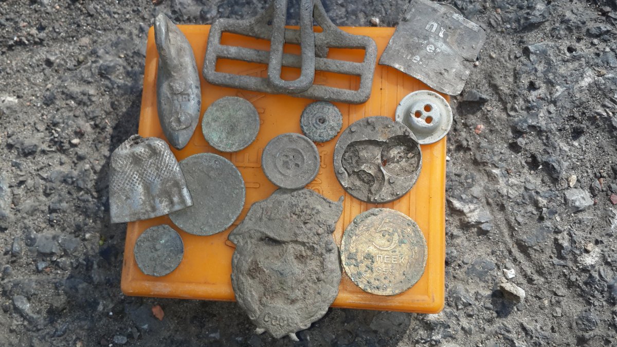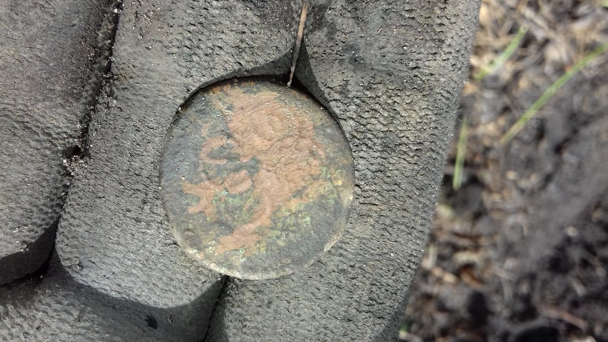 День добрый господа офицеры.Вчера покатались больше чем копали.Намеченые поля уже посеяны.Пришлось "маты шо малось".Одна копейка Н2,двуха А1,пять чешуев,фенежка германия,две двацульки сср 1935 и 36 г.Пятнарик 61-го.Один Аврелий.Булавка Аврелия.Шмурдяк.Пояски.