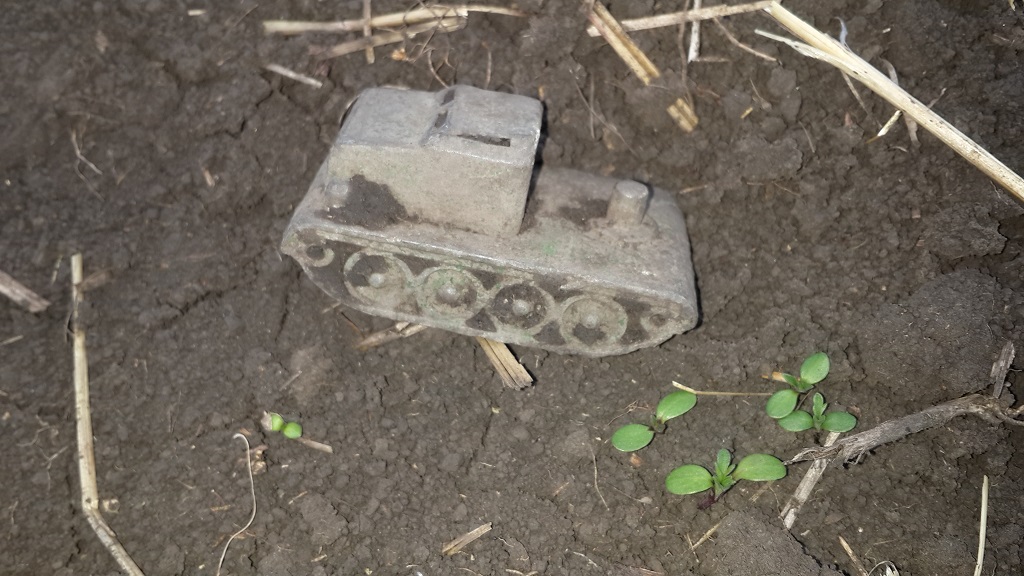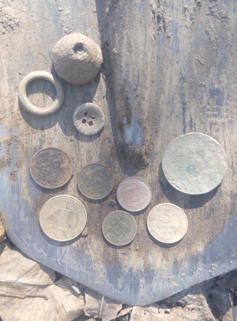 Доброго времени суток . Вчера, позавчера выезжали начитавшись о боях в одном селе в Днепропетровской обл. Как всегда наши "историографы" приукрасили в три раза события которые там были (наше мнение). Может конечно всё и выбрано, так как в округе видели две "банды" местных аськолюбителей. Из интересного :знак, чье то сердечко "Галя" )))), зажигалка, пестик. Какой то маленький кругляшек с надписью. Увы пока прочитать не могу. Шмурдяк в виде гильз, пуговиц всевозможных и т.д. не фотографировали.