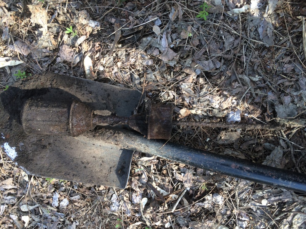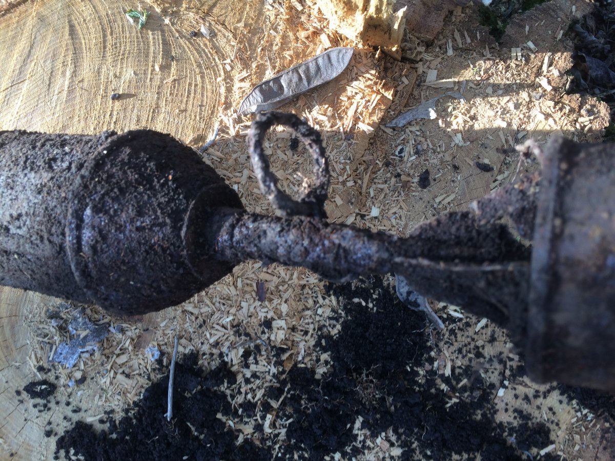 от чего не знаю но надпись гласит: Заливать тормозную жидкость только здесь. ну или что то около того явно с техники. в том месте ранее попалась запчасть с вилки мотоцикла BMW, немного отстрела маузера, кучка убитого отстрела лебеля зарытые в одном месте. куча разного шмурдяка и самое лучшее штык с лебеля. Ну на сколько мне рассказывали камрады за разнообразие и количество находок в том месте, похоже что там стояла рота трафейщиков. там была куча всего разобранного и как правило это все немецкое и раскидано по лесу