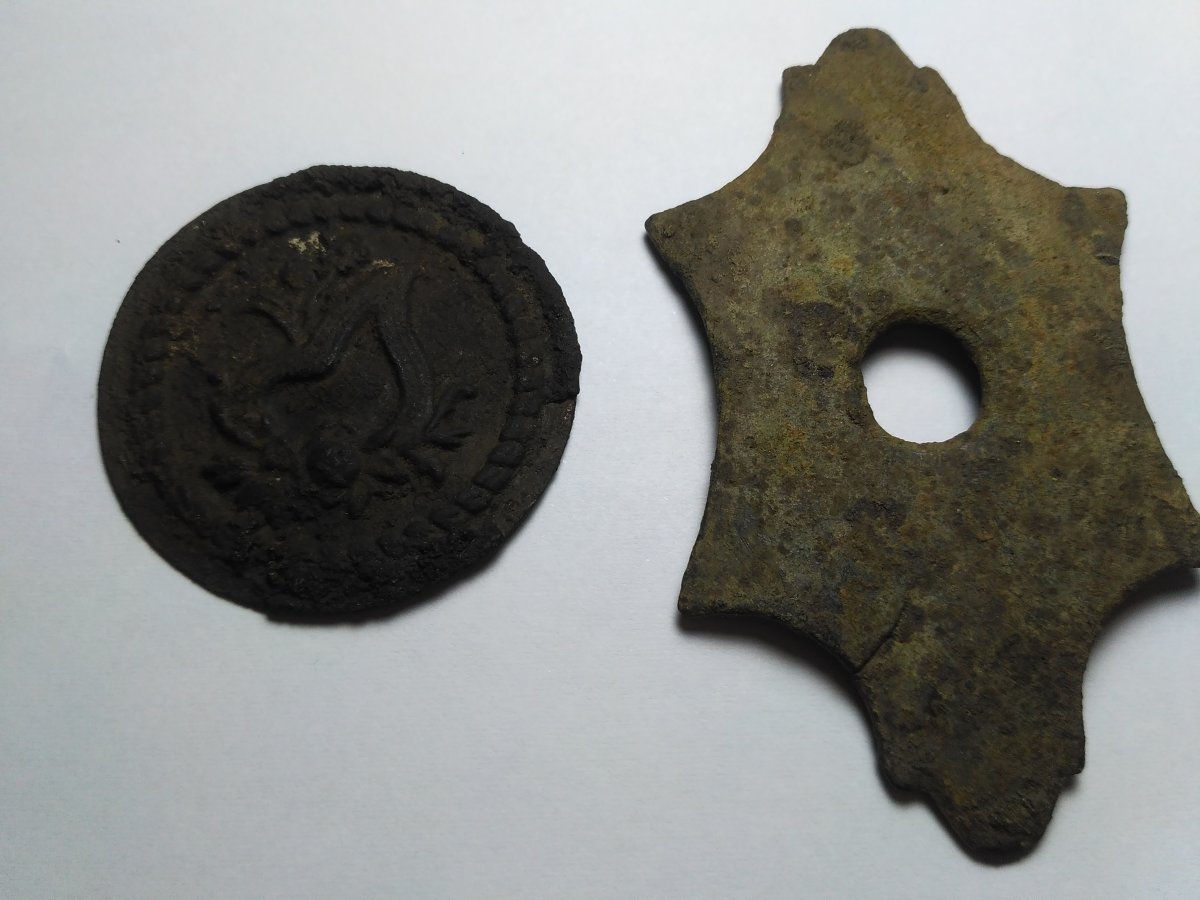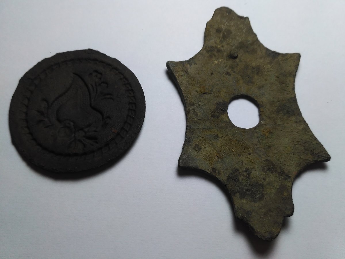 Доброго дня. Сегодня удалось покопаться . Попалась бронзовая рука ✋. Может кто подскажет?.Под пряжкой думаю что это подсвечник? И двухсторонняя ладонка . Такую ещё не находил . Извините но фотографии могу сделать только такие.