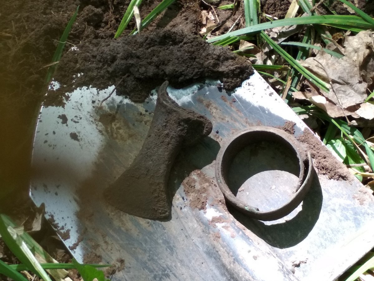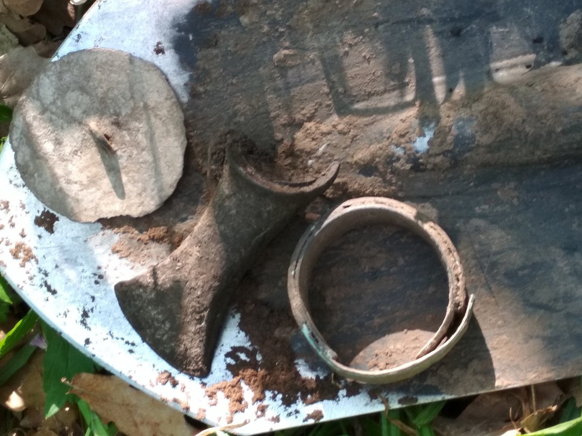 Классный пятачек, давно хочу но не дается, хотя при мне находили. *** Приветствую пановэ. Малехо отчитаюсь. Открыл сезон велокопа. В субботу, потом воскресенье недалече по старым местам. Ну, что сказать, печалька, видать выбрал все. Ни единой монетки даже советика, немного гильзача, пояски.. ну в воскресенье вилочка правда симпотная была, думал серебрушка, но дома взял большой глаз и не оно... И вот с такими невеселыми думами маялся куда же двинуть сегодня..? Вспомнил одно место, давненько не был там, когда то попалось несколько царей.. Ехал ехал и чуток вильнул не туда, постоял подумал и решил буду тут. Осколки, осколки, снаряд, пояски... и вот непонятный сигнальчик, снимаю пол штыка, сигнальчик лучше и еще где то там... Углубляюсь и немного озадачен, думаю похоже на браслет, но странно откуда тут??? В метре второй сигнал.. который сделал сегодняшний день, еще через метр, бляха. Вот такой расклад. Извините камрады за многА букАв, это чтоб вопросов было меньше. Ну и всем закапывающим ямки, приятных для души находок. *