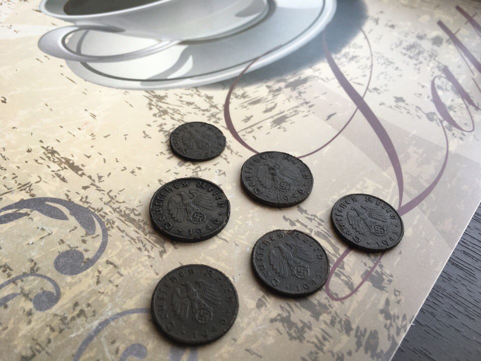 Добрый день! Сегодняшние 3 часа по жаре дали такой результат Рукоблудный жетончик с вилки/ложки интересный (первый раз с немецкой птичкой предмет попался). На поляну таких гигантов набрел
