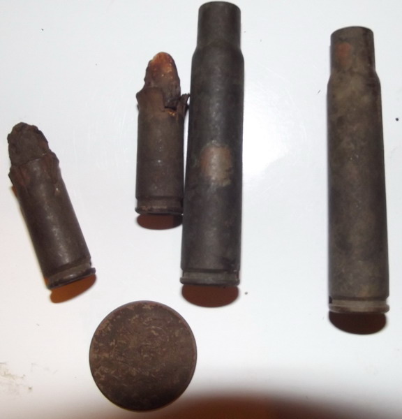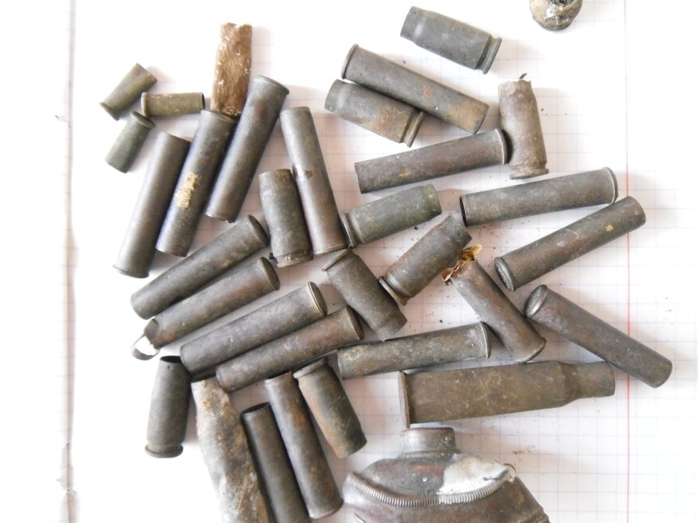Сегодня в Тимченках зашел в лес метров на сто, вдоль дороги в метрах в 10 не стрелянные шмайсеры разбросаны были, чуть глубже в лесу гильзы нашел и подкову.