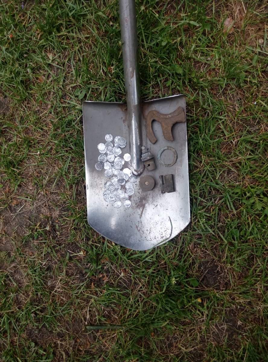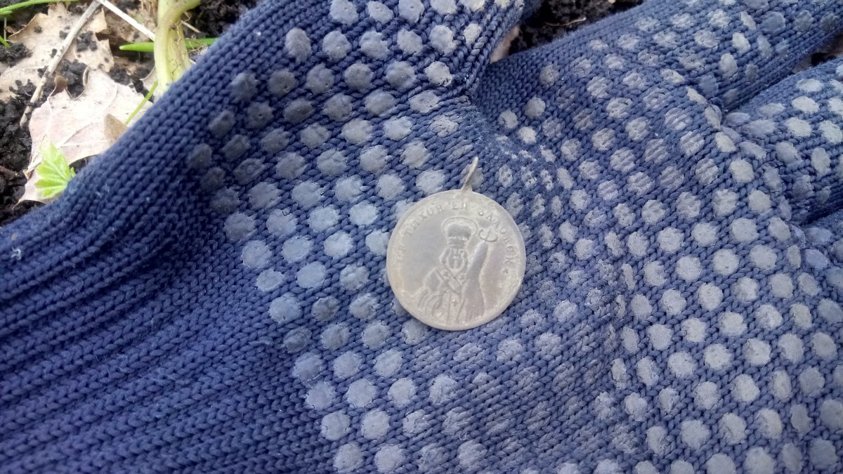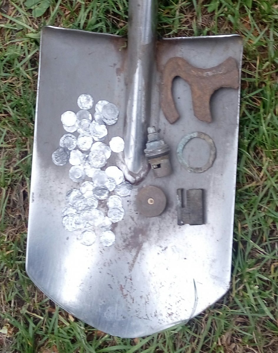 Доброго времени суток. Вчера ездили на разведку новых мест у товарища выскочил топорик похож на Кр и компас. А у меня бляха из белого немагнитного метала и пломба ж/д.