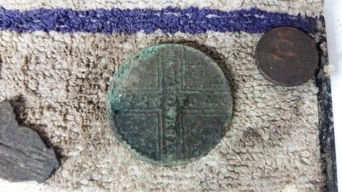 Доброго дня камрады! Наконец-то есть что показать интересное. Вечера немного прогулялись с камрадами, слева мой хабарок, справа камрада. Чисто случайно проезжали мимо одного небольшого поля(30метров на 150метров примерно), которое уже очень давно не пахалось и травы всегда было по шею, а местные вспахали и ничего ещё не посадили. Мы подошли спросили можно погулять или нет, нам дали добро. Ещё камрад там поднял 2 чешуи и копейку Петра. Выходили в троем от и до, но находки перестали попадаться вообще, ждём вспашки по новой. Крестик "лепесток" давно хотел найти, но как-то не складывалось, теперь он у меня есть и в бодром сохране. Крестовик очень порадовал он задал хороший ритм для поисков, ведь я его нашёл практически сразу в 5.12 утра Ещё ушатал диск на обратном пути, немного береборщил со скоростью. Ехали около 50км/час и она как выбежит под колеса, ямы очень коварные - бегают по всей дороге. Сходил померял, ну что сказать - ПИЗ... 23см глубина, 40см ширина и 120см длина, а из далека кажется что небольшая мелкая выбоина. Очень обидно что мы платим за дороги которых мы не видим. Всем удачных сигналов и кладухи под катуху