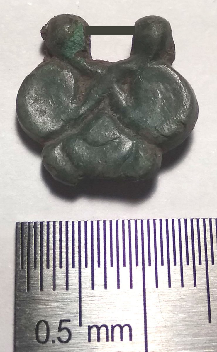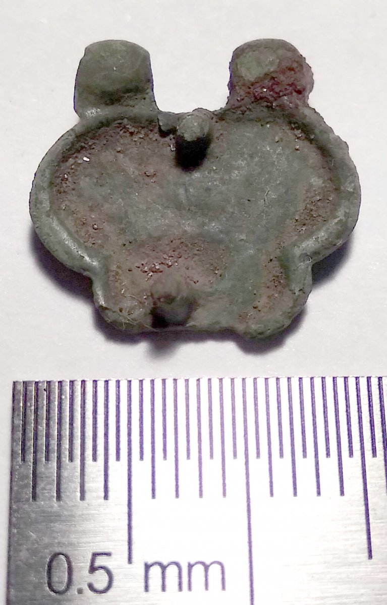 Добрый вечер. Попалась давеча вот такая бронзовая штуковина: В верхней части, видимо, была шпилька. Примерно так: Накладка? Возможно, кому попадались похожие?