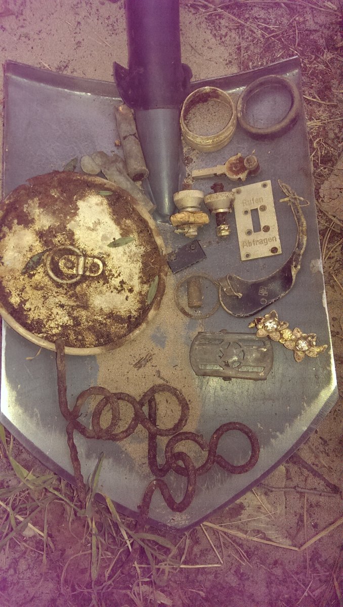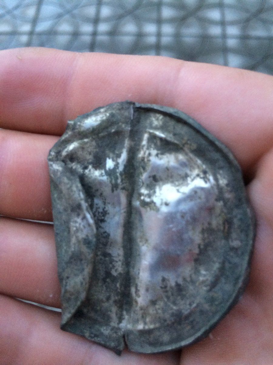 Доброго. Вчера вырвался ненадолго покопать по старому месту, фотографировать было нечего, уже дома когда разбирал гильзы, пробки и остальной шмурд, привлёк внимание кусок нержавейки скрученный в дудку, когда развернул его выскочило клеймо 800 , походу крышка с часов