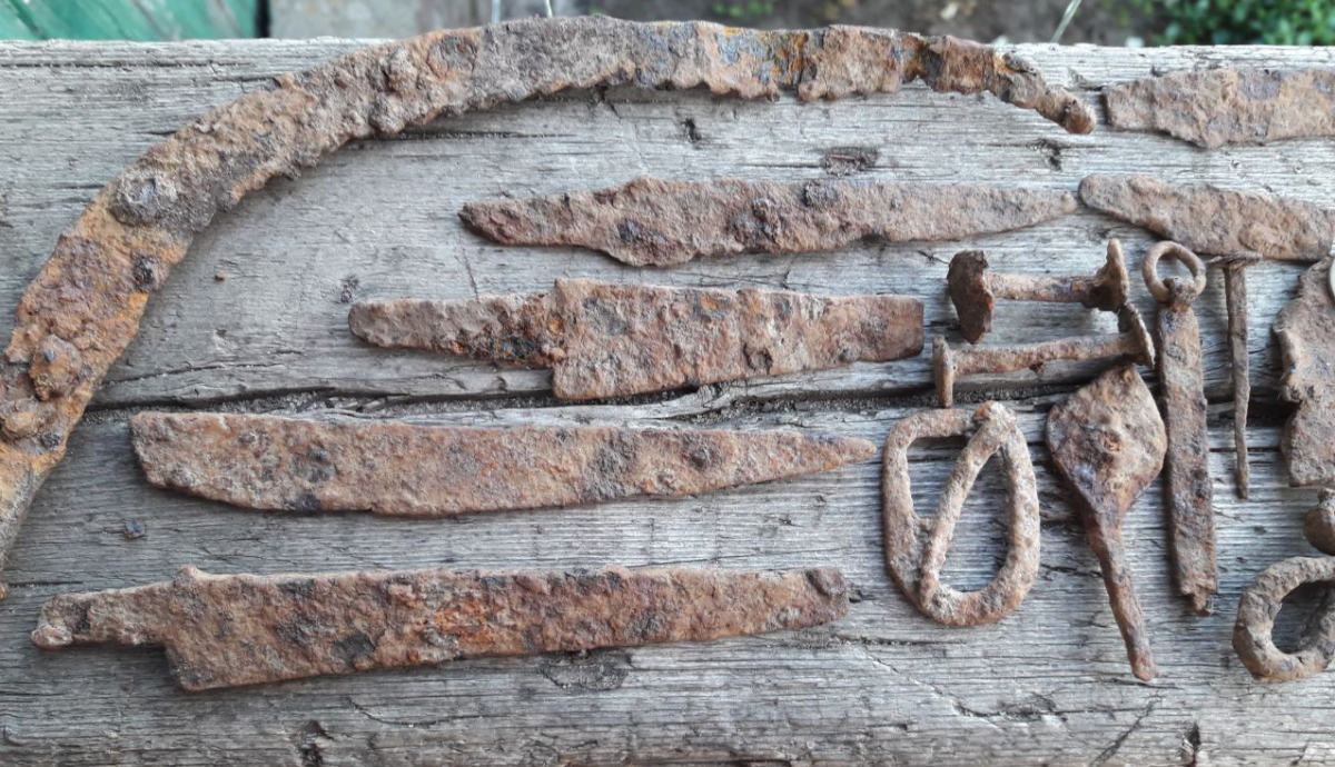 Всем доброго вечера. Посещал Чугуевщину с вечера субботы до вечера понедельника. Погода отличная, единственно - дождик (ливень) не дал поспать, очень громко стучал по палатке с 2 ночи до 9 утра. Находки как для места с сотней ямок неплохие: ножи, серпы, тыльник палаша, обломанное стремя, половина ушка от котла, остальное железо мной не определено. Особенно порадовало колечко с 84 пробой - пропустить такой сигнал было нереально в месте, где цветных сигналов меньше десятка в день. Ещё в лесу выскочила такая вещь, может кто знает что это? Патина тонкая, но не думаю, что что-то старое А вот вчера пару часов полазил уже по жаре по местным лугам Змиевщины: Гирька фунтовая (406 грамм). Разница, как говорится, налицо... Всем удачных выходных!