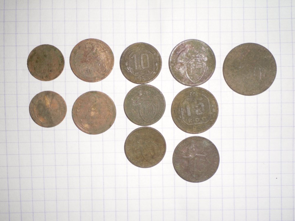 Ну не на 10 минут. Это уже перебор. Но всё по порядку. Для того что - бы не захламлять тему решил объединить результаты вчерашнего и сегодняшнего выхода. Место всё тоже. Вчера - 11 монет. Сегодня-20 шт. Удивило одно - сохран бронзовых и медно - никелевых монет ( фото №2, второй и третий ряд). Такое ощущение что не 73 года пролежали в земле, а от силы год-два. Даже блеск на никелевых монетах остался. Найдены одной кучкой на пригорке под деревом в количестве 14 шт. Видно с кармана высыпались.
