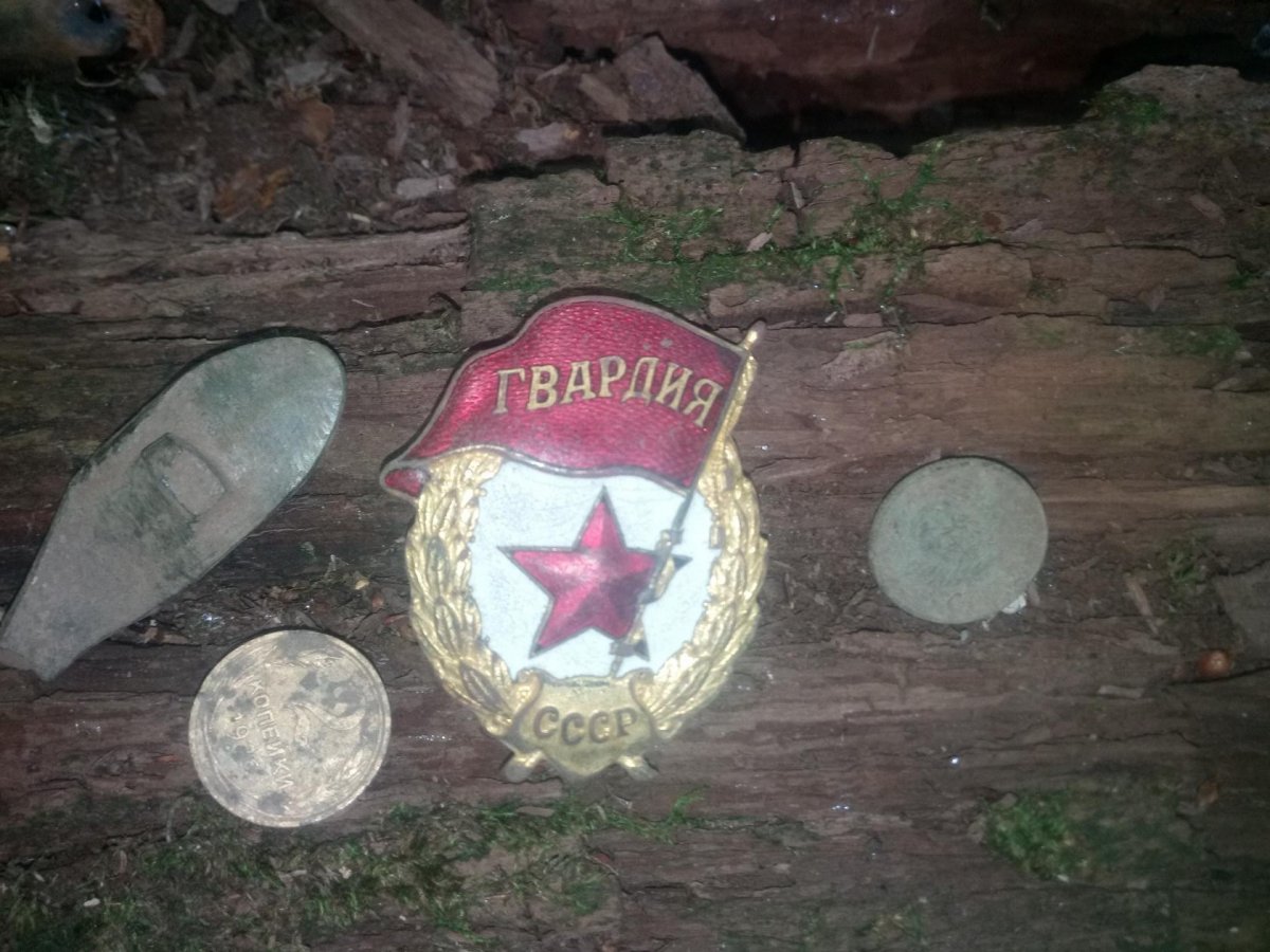 никаких обид.это очень дорогая и безумно редкая находка типа золота что именно ее и стоило выставлять как за свою(долго выбирал среди других немецких и наших наград но выбор был за гвардией)ну и само собой везти ее в лес чтоб сфоткать на фоне природы предварительно купив на форуме пару монет и патронов.не собираюсь и не буду вам ничего обьяснять или доказывать.не в обиду.хорошо что не софткал сразу сзади а ведь тогда точно с полки была б на винте была какая то фигня похожа как на бумагу -порвалась
