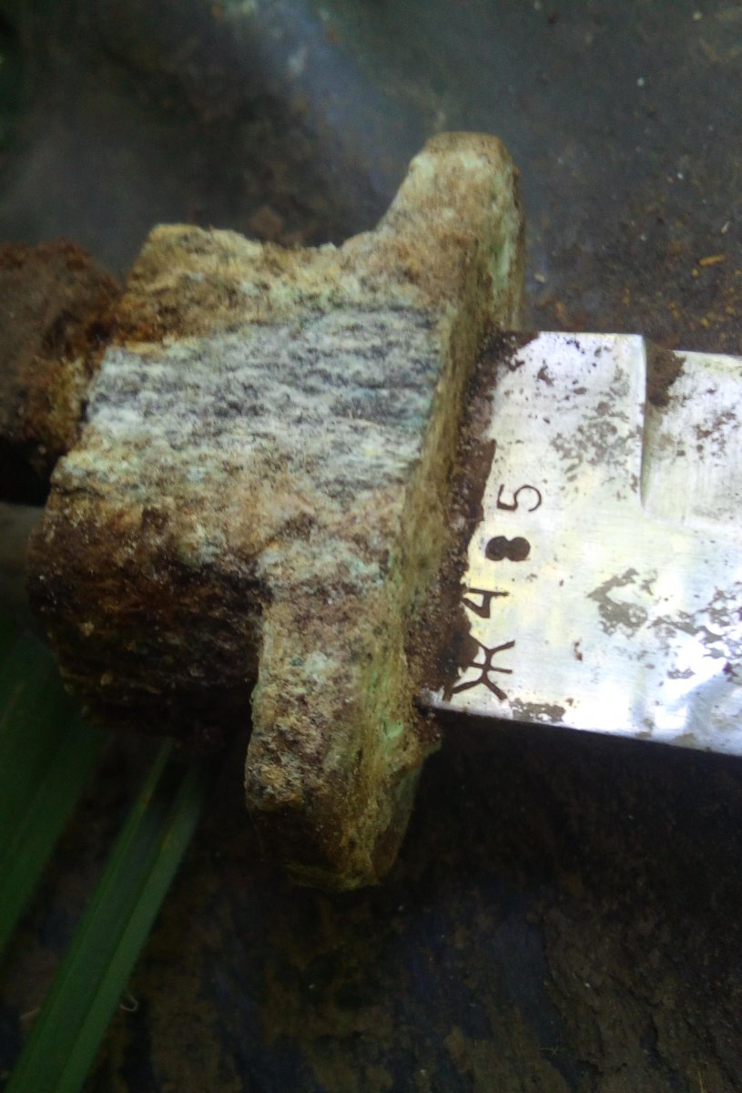 Вот скажите, какой смысл еще раз, для недоверчивых. человек ее выкопал из земли, а чистили уже вмести. он принес показать находку и я предложил ему сразу почистить, так как он не носит с собой щетку. я тоже не все находки, только из земли, фоткаю. серп сфоткал, а вот нож нет. сфоткал его только дома после помывки