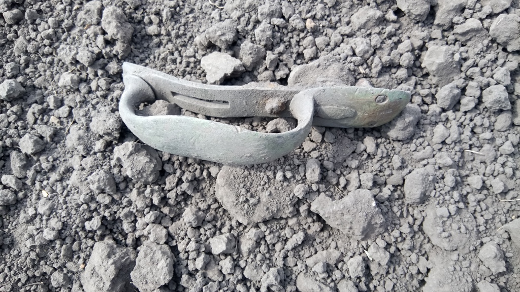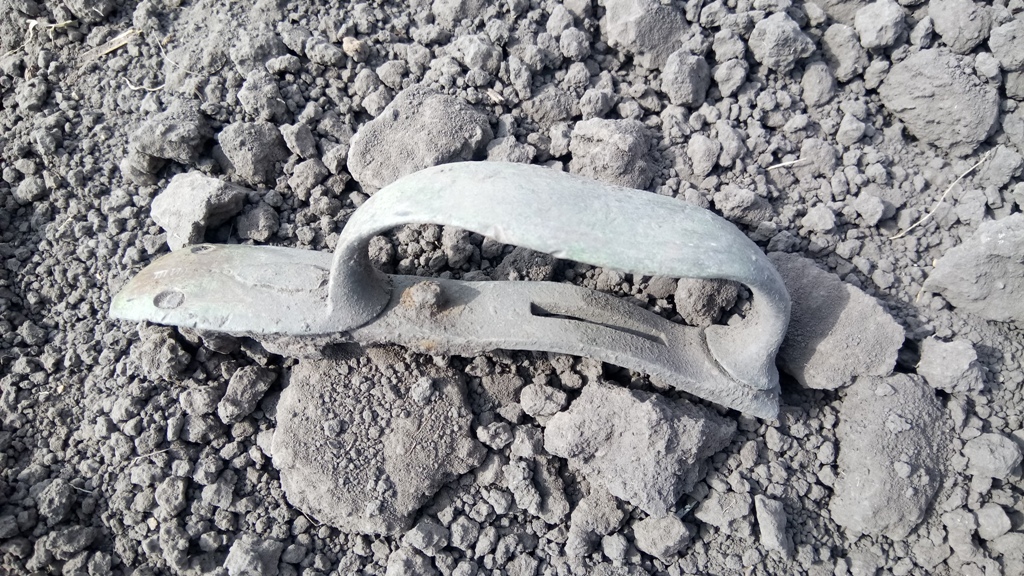 Как вариант, это может быть колосник с печи. Находил такую же штучку на месте старых хат, но обломанную, со следами воздействия огня.