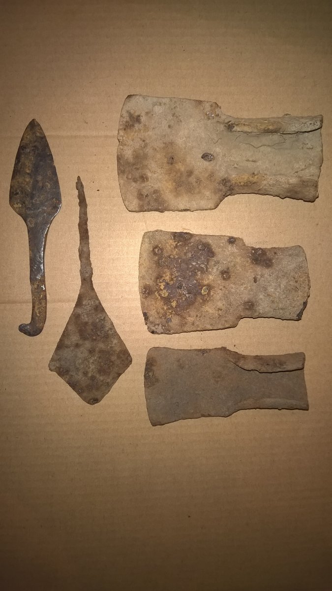 Не только советы и царские какали остались, вот из недавнего копа. Подскажите кто нибудь, что это за три интересные штуковины вверху? Все разного размера.