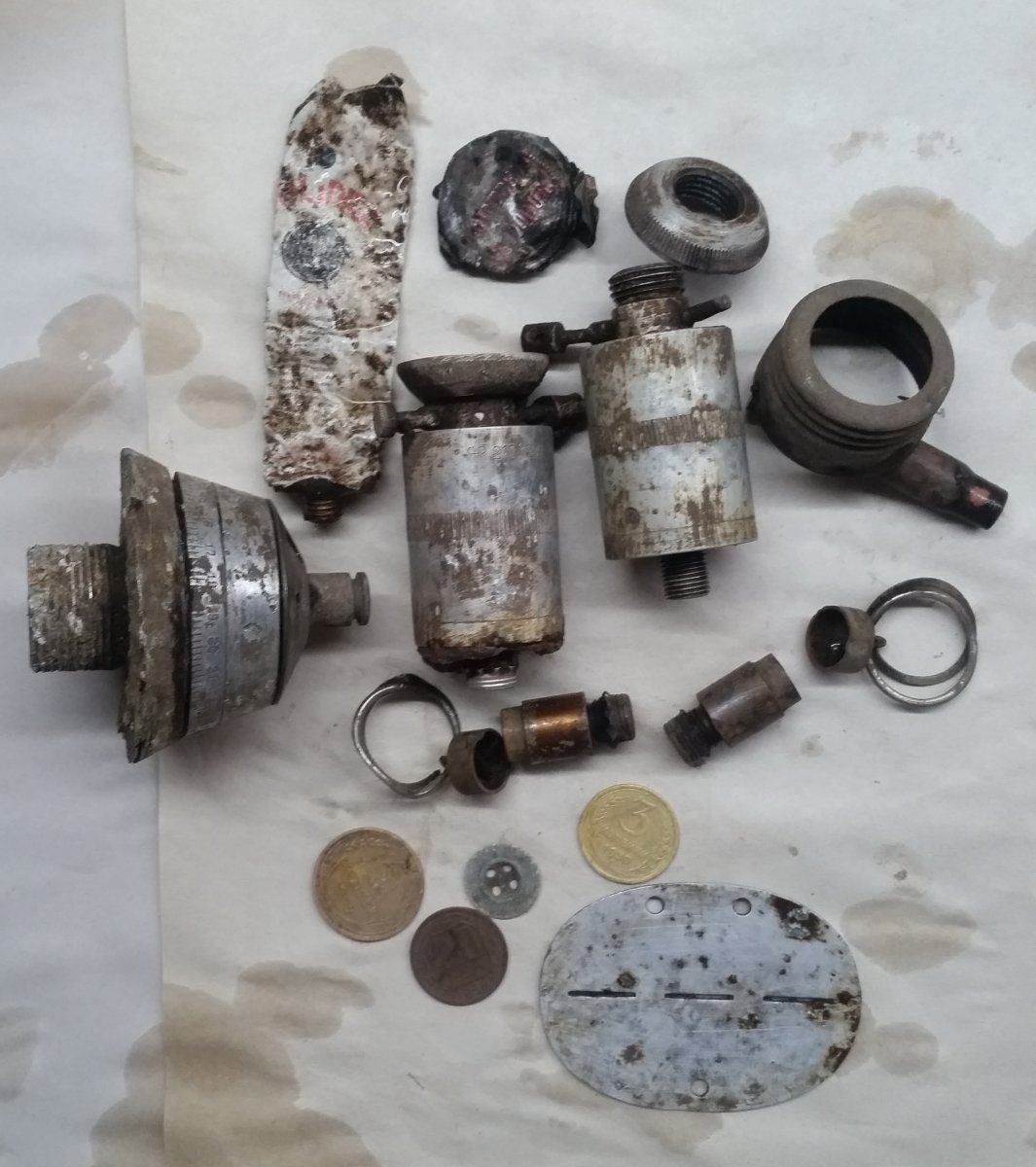 Добрый вечер, камрады! Сегодня день обломов. Нашел в дальних местах немецкие позиции. Думал - будет хабар. Оказалось и там наш брат уже побывал. Нашел свой первый жетон., был весь черный. Дома отмыл - а там пусто. Получается просто заготовка? И "встретил" в лесу лесного деда. Это наверное он весь хабар перепрятал. Спрошу по взрывакам. Большие,нажимные в шпринги ставились? И маленькие, на картинках рисуют с длинной трубкой, а все, что я видел - были короткие. Не весь комплект?