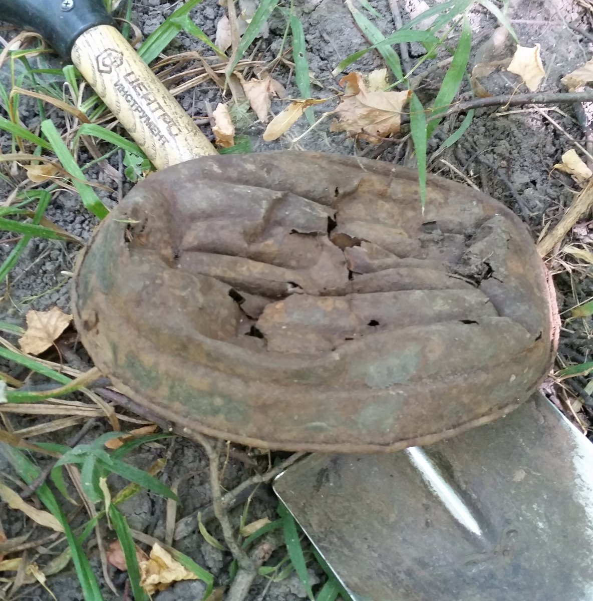 Всем привет, вот вырвался на пару часиков, только включил прибор и сразу сигнал, как оказалось это 5 коп 1949, как оказалось по монетам интересное закончилось, попалось еще три поздних совета, но попалась еще пуга интересная, по крайне мере пока не прочту что написано у неё внутри, а лицевая сторона к сожалению лысая, вобщем хоть рариков нет, но и не с пустыми руками
