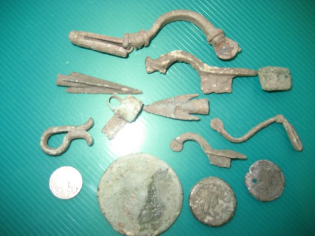 Жарко, земля сигнал проводит плохо, но кое-что подарила. Третье - кажется кусок металла, но в патине древней. Древний кусок металла.