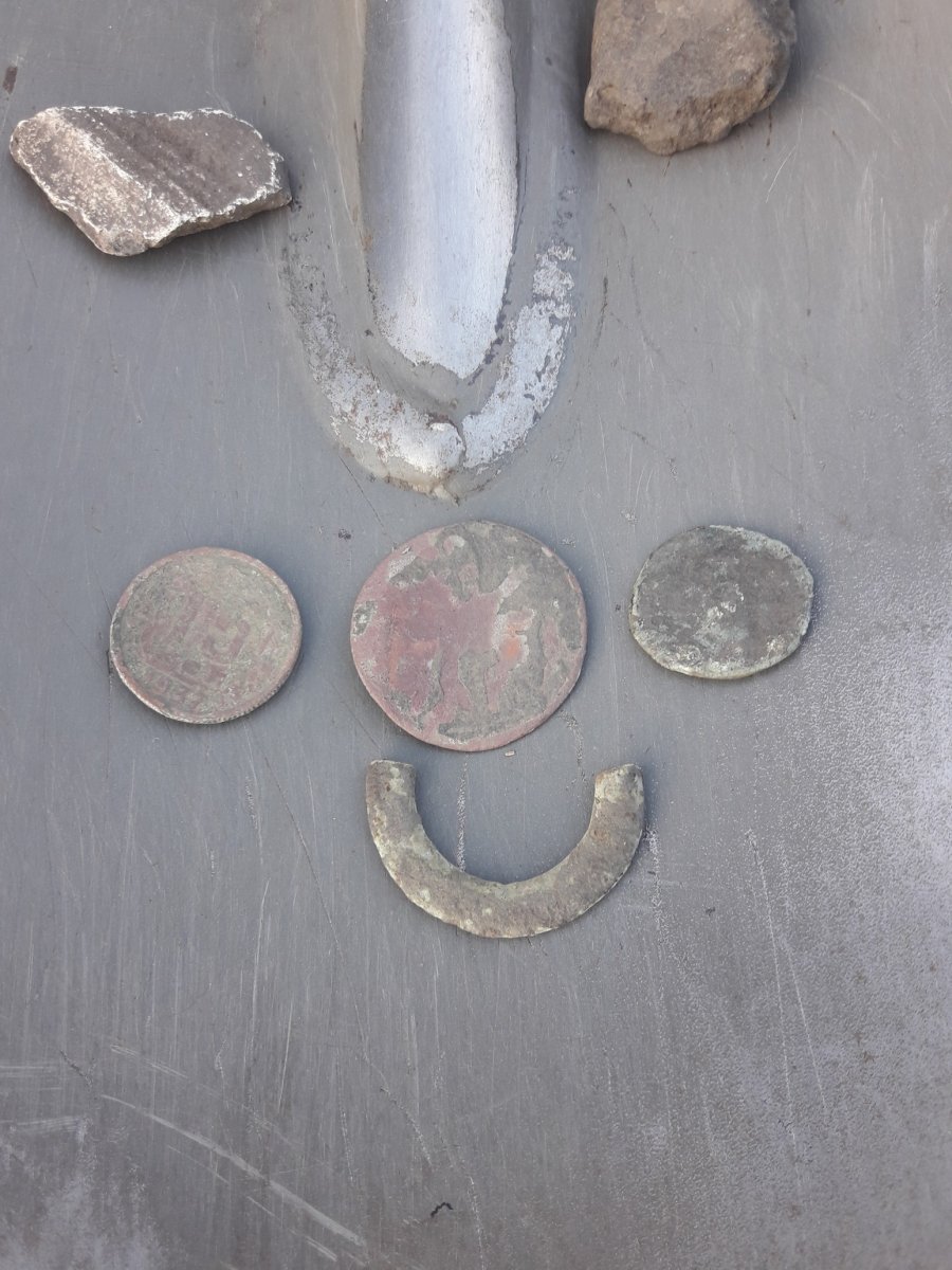 всем привет.вчерашний забег на несколько мест.нижние 4 монеты с одной ямки завернуты были в тряпочку.серебрушки прям за последних пол часа на новом месте.сегодня собирались это место почесать а оно вот как с погодкой.