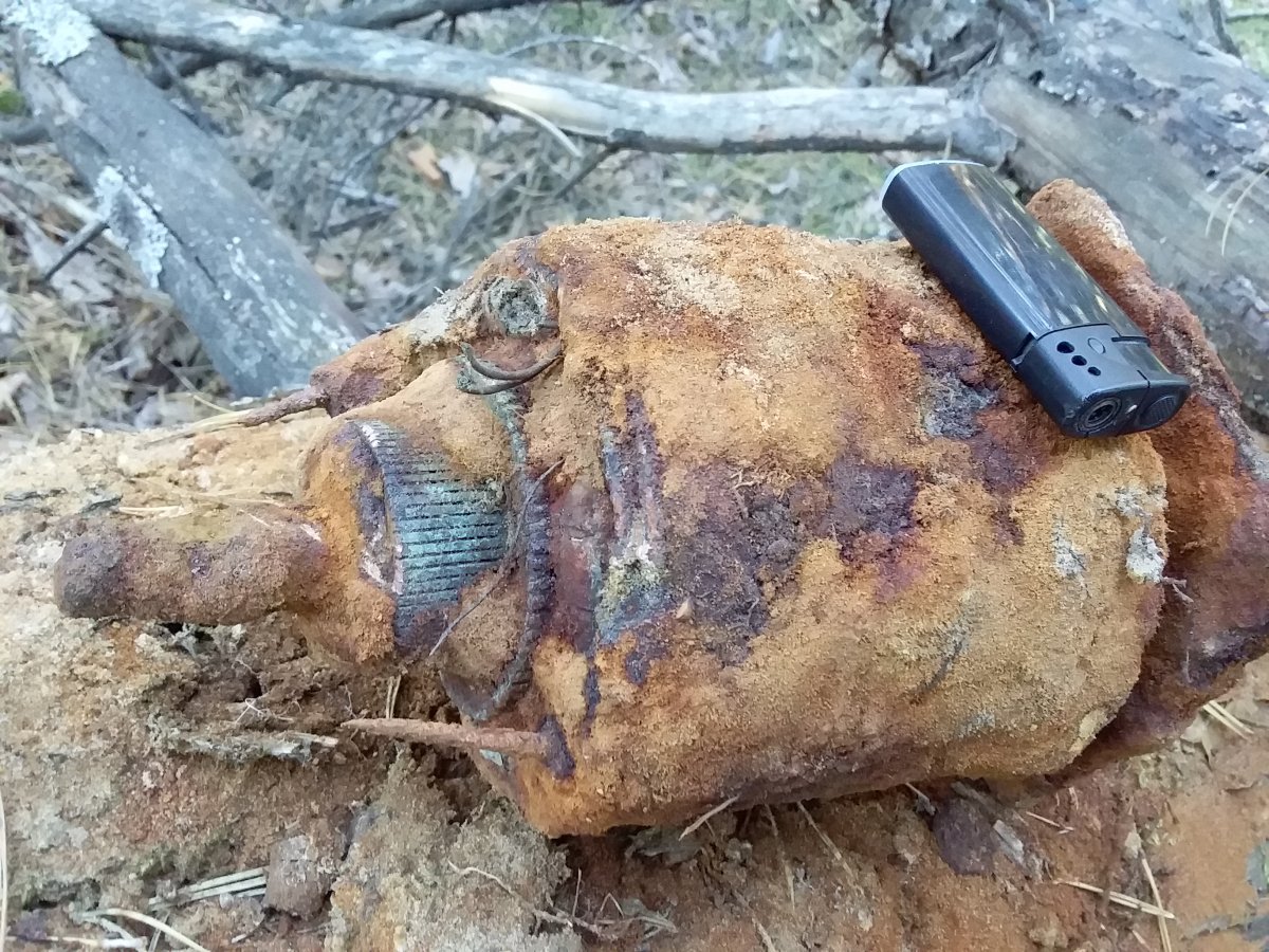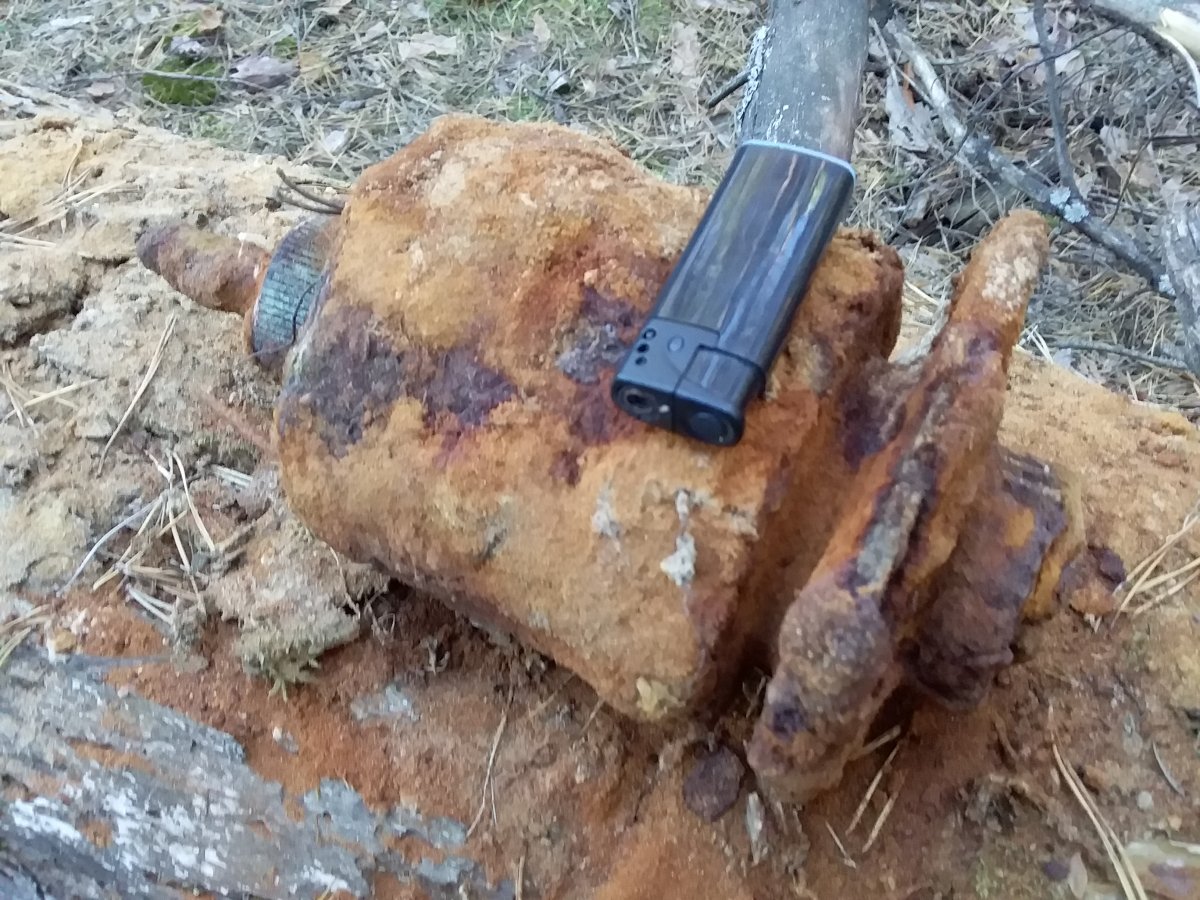 Сначала показалась огромная железка, но зажигалка внесла ясность. Недавно ютуба насмотрелся там копает орел катки Т34, траки горами, разные другие железки по 50-100 кил.