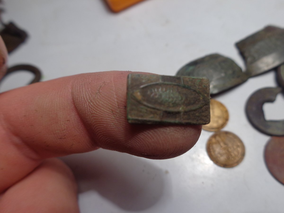 Доброго времени суток! Кину в эту тему ещё, может кому попадалось подобное) Интересно узнать историю такого предмета) Металл медь по моему.