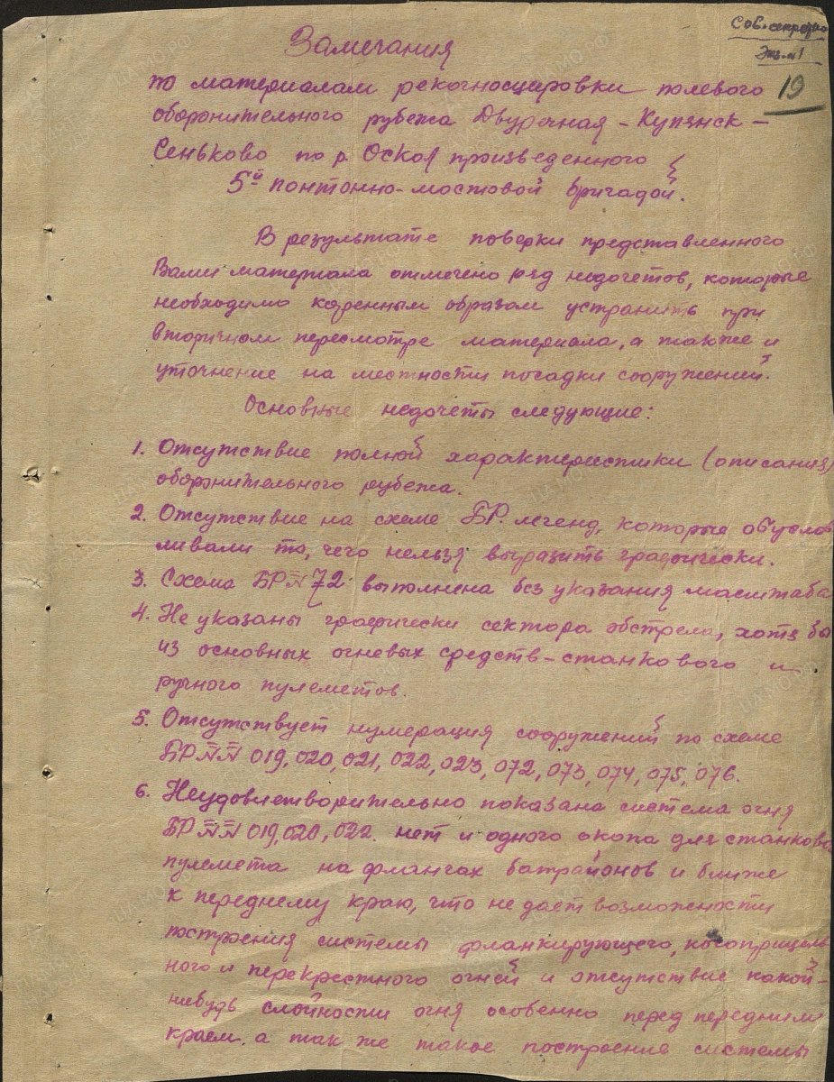 Замечания по материалам рекогносцировки полевого оборонительного рубежа Двуречная-Купянск-Сеньково