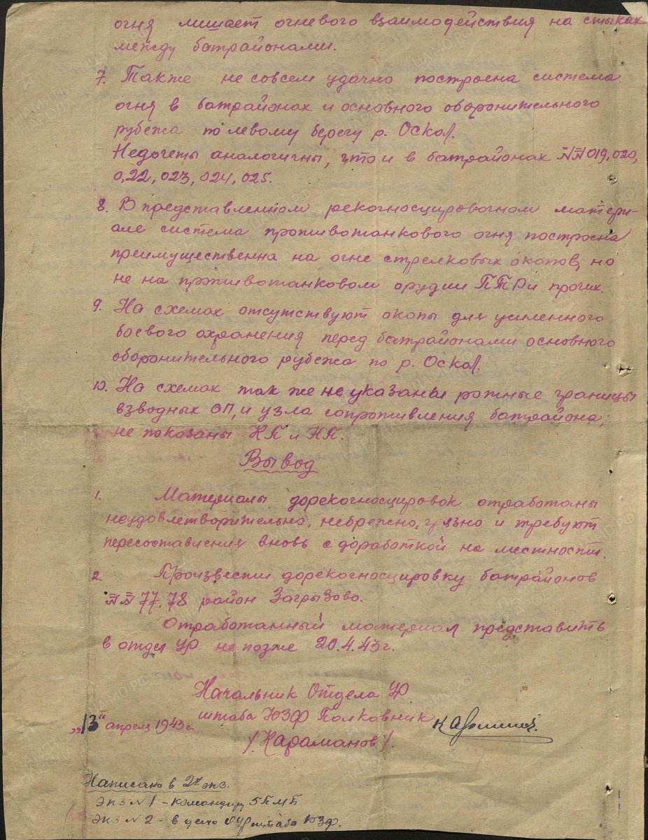 По вопросу о рекогносцировке оборонительного рубежа по лев. берегу р. Оскол. Приказываю