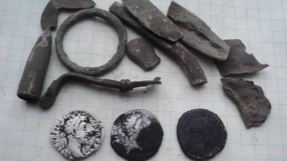 Доброго дня всем.Сегодня у нас уже выпал первый снег,а вчера появилась возможность выехать на любимое занятие коп.Погодка была не ахти,холодный ветер,открытая местность,поле.С начала за пару часов поднял только спинку фибулы,но потом фактически один за одним три денария. Результат вчерашнего копа на фото.Всем добра.