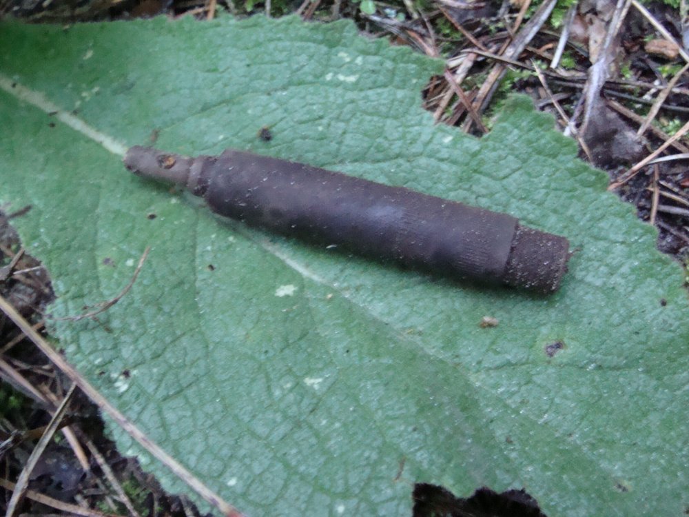 та тоже вчера по грибам выступил, нашел эту хрень, хотел из нее фартовый брелок на ключи сделать, но посмотрел, она 70 лет назад канал ствола прошла, ну я и передумал, отволок к ставку и утопил. А ножны почти возле нее под листьями валялись.