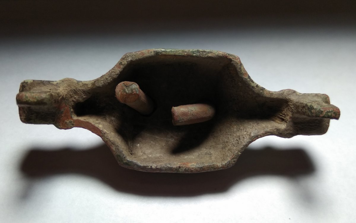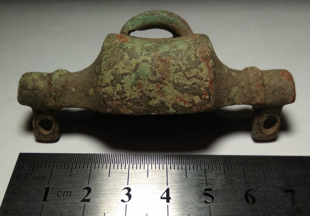 Добрый вечер. Прогулялся немного: Нож эпохи бронзы?: Серьга, височное кольцо, подвеска? Из знаков, только точка, сопутка нож выше и наконечники: И ещё непонятная бронзовая деталь, может кто знает её назначение: