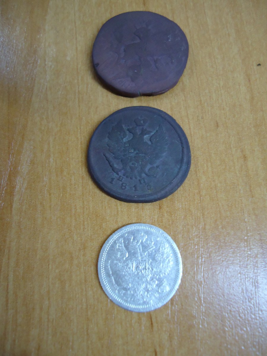 Здравствуйте друзья Камрады, сегодня решил выехать на коп, поехал на новые места на соседский луг! Приехал пару цветных сигналов-шмурдяк и глубокий прыгающий сигнал ВДИ на Деусе 82-92 копаю и с глубтны фискаря выпадает 20 копеек 1883 года серебро я офигел, так как сигнал не монетный! Пролазил 2 часа монет 0, а шмурдяка - 1кг алюминия. Взял переехал через 500 метров, стал и не далеко от машины ловлю хорош сигнал ВДИ 92 копаю и выпадает 2 копейки 1813 года, решил сразу рядом просигналить и через 2 метра ещё сигнал ВДИ 96 и выкапываю 2 копейки 1759 года Елизаветы, проходил ещё 1 час и нечего монетного, пуля и пуговица СССР, и метала 5-10 кг вот и всё! Всем добра братья и кладуху под катуху!!!!!