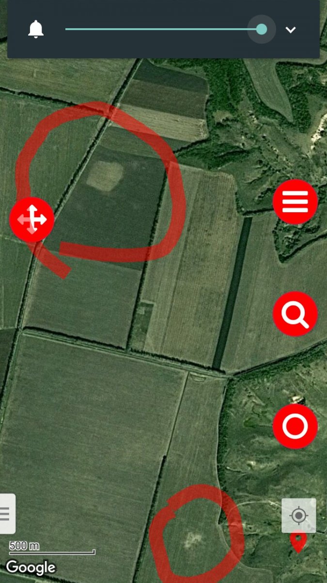 Фото не информативное, но попробую. 1. Поселения? - наврядли. Далеко до воды, справа офигенно глубокие балки , скот держать не удобно. По крайней мере у меня похожий есть рельеф - находок ноль. 2. Более перспективное место сферху. Дорога рядом, какие то пятна, возможно были курганы. Если конечно это не спец запашка чтобы овраг далше не рос. Посмотрите еще старую РККА карту. Там иногда отмечены курганы которых нет на Шуберта.