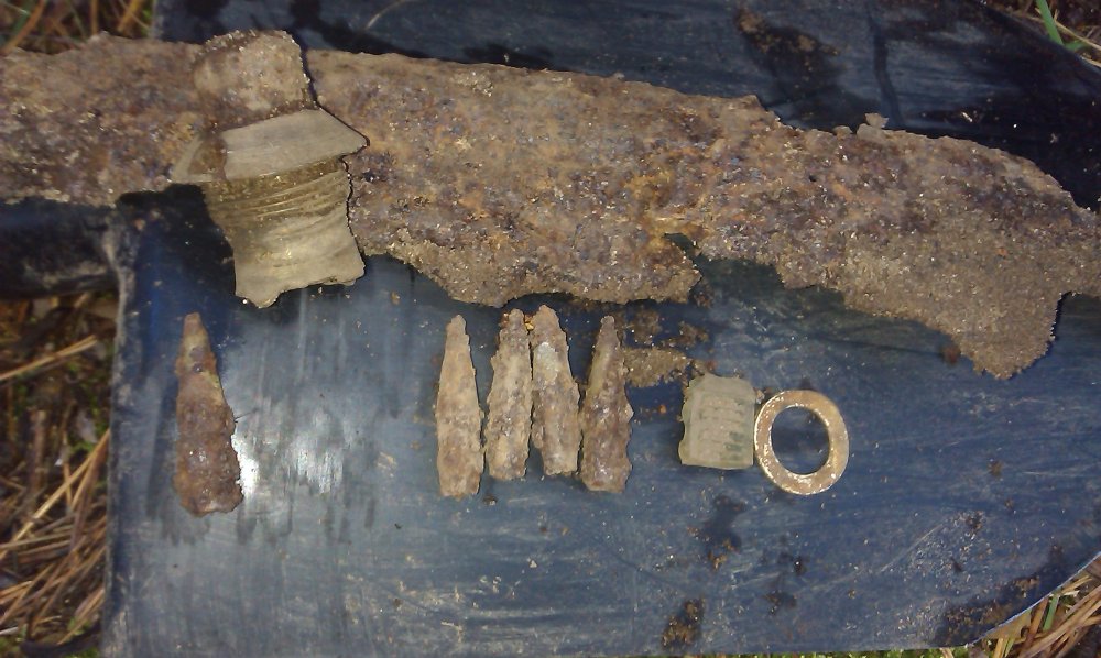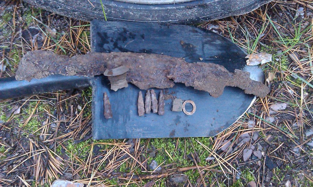доброго времени суток, сегодня объехал Донец на сторону "фашстских" позиций, как раз напротив совецких на которых в прошлые разы "лазил". начал от реки и продвигался в глубь леса к основновной стоянке, но не дошол, ещё всё впеди, наткнулся на огневую позицию (пустая) с которой в радиусе 300-500 м округа простреливалась, прошерстил всё в округе и в одном месте поднял с десяток пуль на участке 7*7 метров, вокруг этого места, прошерстил ,ничего не ношол (тут явно по ком-то вёлся огонь), лес завален осколками. у меня вопрос: 1. на фотках два вида пуль, большая (слева) думаю от мосина, меньшие с ганс пулемёта или винтовки, поправте если мои догадки не верны. 2. что это за предмет с резьбой из цвет.мет.? как я думаю это взрватель с миномётной мины( немецкая или наша?) 3. огромный осколок , пологаю с авиабомбы.
