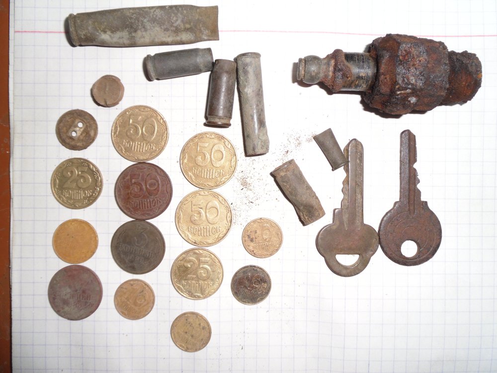 Раз пошел разговор за монеты, выставлю свои монетосы за пару крайних выходов, попалась пряжечка "партизан" и современное колечко.