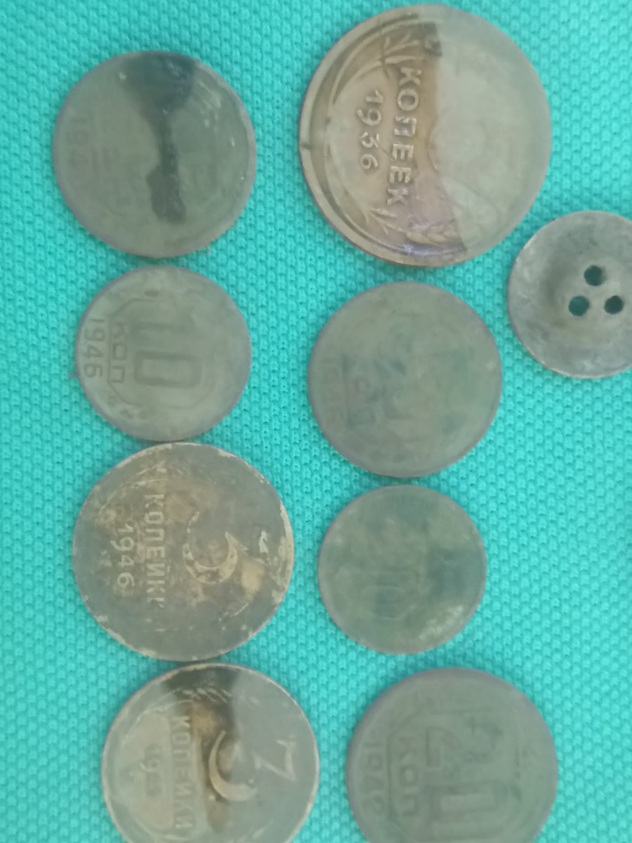 Сегодня бил прошлокопное место, интересное горлышко, в алюминии или олове. Две пуговицы вмф, ну и дореформа. Порадовал пятак 36г.треха 41и 20-ка 42г. Люблю военные года. Сегодня без царизма.