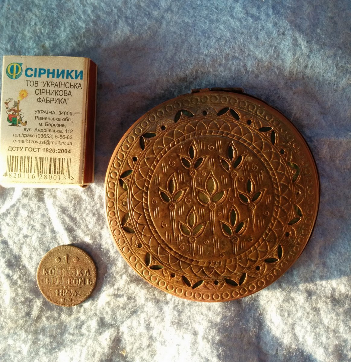 Из интересного только 2 вещицы. Монетка полуубитая и пудреница (как я понял).