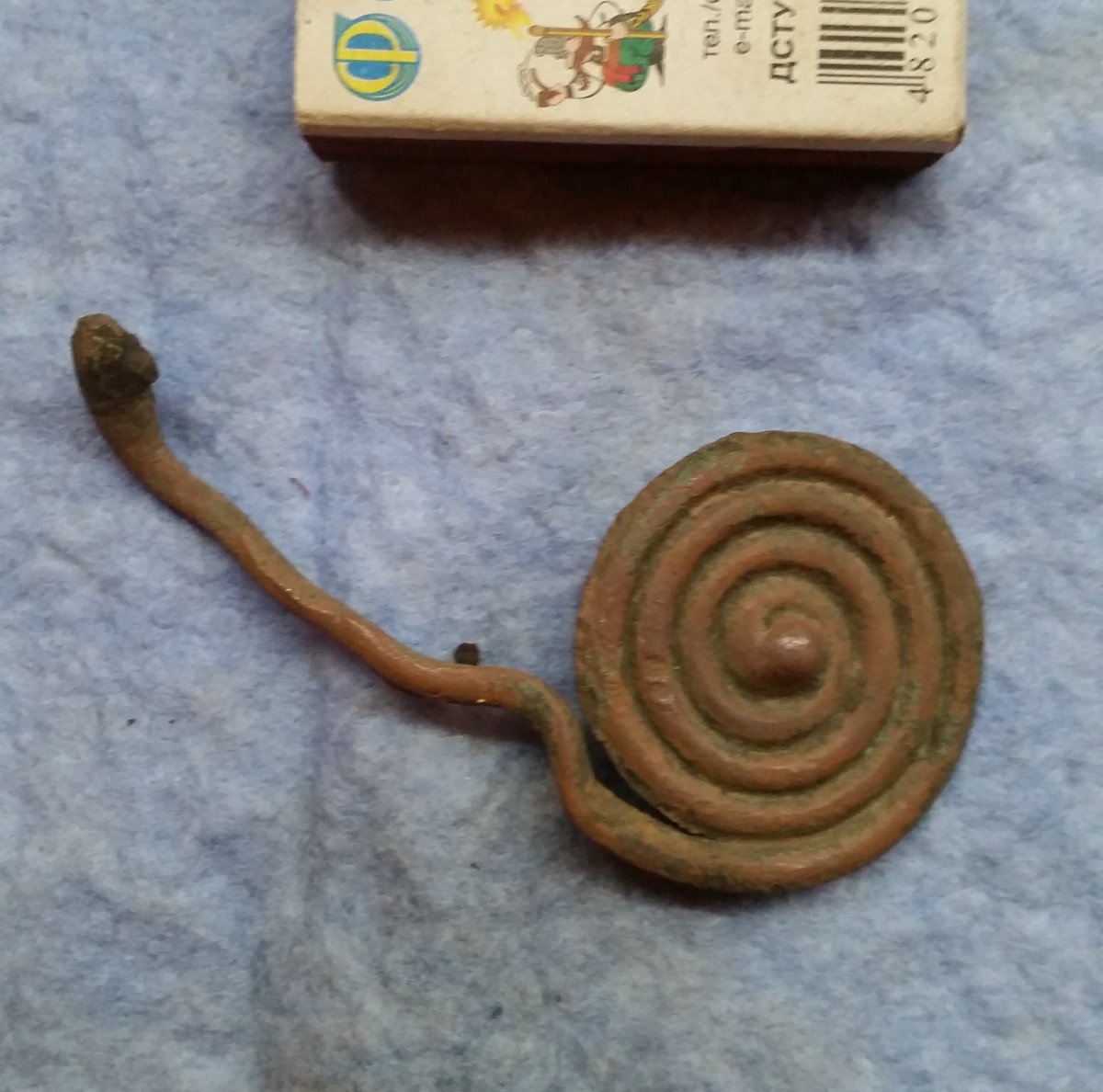 Спасибо всем, кто подсказал по фенечке! Похоже, что действительно оно. Красноватый оттенок от удобрений, т.к. найдено было на поле. Смущало наличие утолщений на концах проволоки, как будто запаянная трубка, как в холодильнике Хорошо отмыл щеткой с мылом - таки не трубка, а проволока и вроде бронза. А на краю утолщение- видать трактором разорвана, но давно уже.