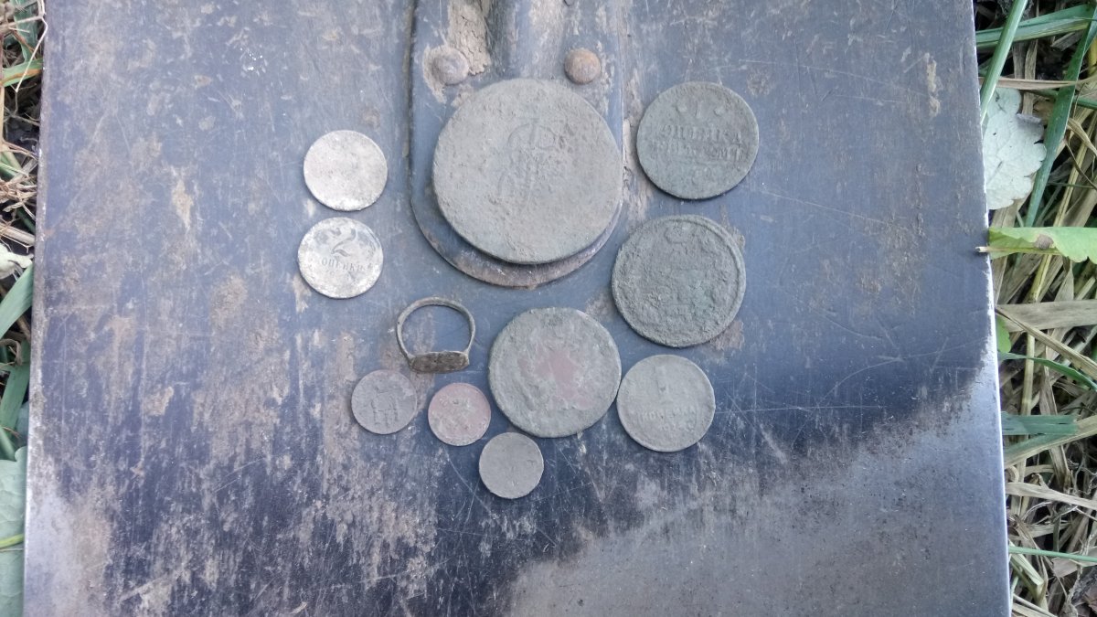 Доброго времени суток, Камрады! Сегодня, сканировали с товарищами одну исчезнувшую деревню. Поднял очередной пятак Екатерины. Мои находки на лопате.