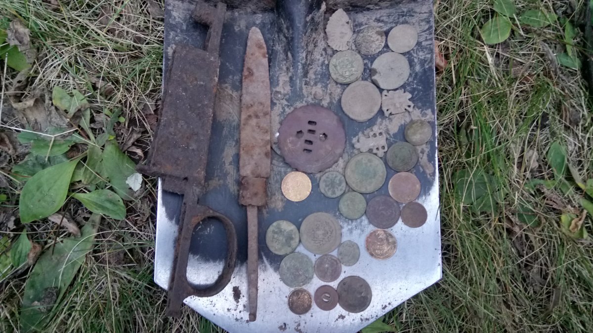Доброго времени суток, Камрады! Вчера выбрались с товарищем, послушать, Землю. Пару раз попали под дождь, но докопали до темна. Прошлись по лесу и по огородам. Общий результат на лопате. Всем Добра!