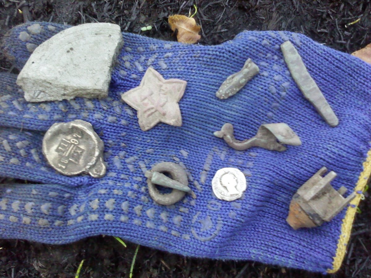 Приветствую,господа офицеры.Наслушался я тут про серебро после дождя.И решил тоже сыграть в рулетку.Решил я пробить интересное место.Была "пидозра на ЧК".Решил проверить.Небо было мрачное,свинцовое и на количество находок я и не расчитывал.Сперва на ЧК вылезла звезда РККА ранняя,что согрело немного душу ("Сберкнижку мне-е-е!"(ц)).Потом на ЧК вылезла пломба похожая на водочную пробку.я так было и подумал.но вес заставил протереть и рассмотреть получше.Дата 11.10.1897 г.Забрал.Чуть позже платежный слиток.Уже теплее.Я думал Ну где же,где? Выскочила обувная пряжка.Совсем горячо.Ну когда же,когда? Копались гильзы в изобилии,проволоки алюминиевой просто ж...а.Ну и когда в свинцовых тучах появился "Божий Глаз"-выглянуло в прореху солнце,наконец появился он-долгожданный динарий!Давай я смотреть,что за император,а там лик незнакомого самозванца,да и буквы все кривые! Варварское подражание.А это лучше чем Аврелий и Адриан с Коммодом вместе взятые.Ну вот и отлично.Денарий был верховой,я даже не вывернул лопату.Аська конечно не сильно рулит-но сегодня нарулила.Потом был маленький двухлопастный наконечник и фибула с высоким приемником.Стало темнеть и я сделал итоговое фото.Но потом еще полчаса искал.Но как отрезало и кроме двухи советов 1948 года,более ничего не выкопал.Потихоньку начал выдвигаться в сторону дома.И сделал несколько фото сумеречного сеннего неба.